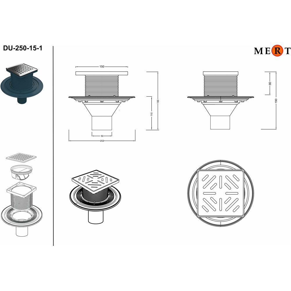 MERT MERT Flach Bodenablauf Duschablablauf 150 x 150 mm Edelstahlrost DU-250-15-1