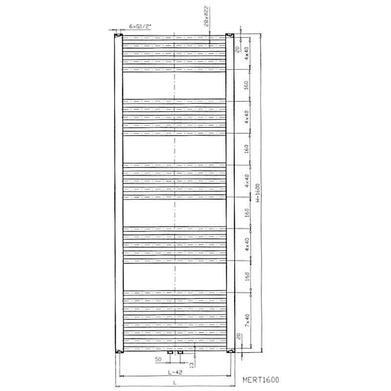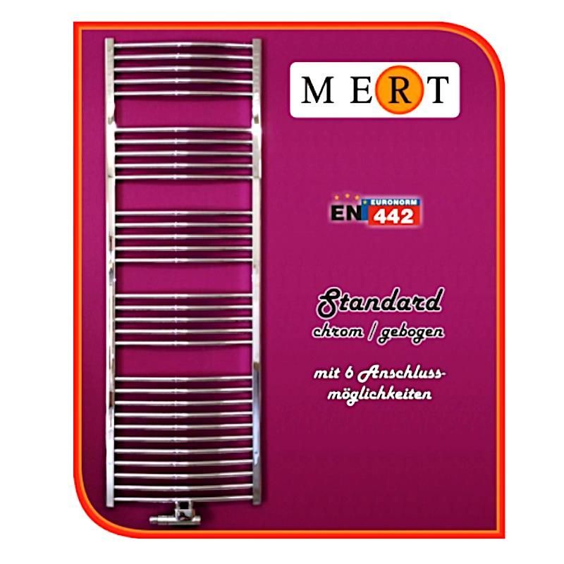 MERT Standard Badheizkörper Chrom, gebogen, Mittel- und Seitenanschluss verschiede