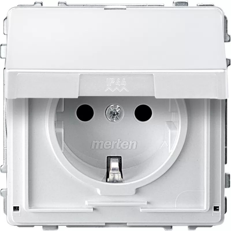 Merten Merten SCHUKO-Steckdose mit Klappdeckel, Berührungsschutz, Steckklemmen, polarweiß, A