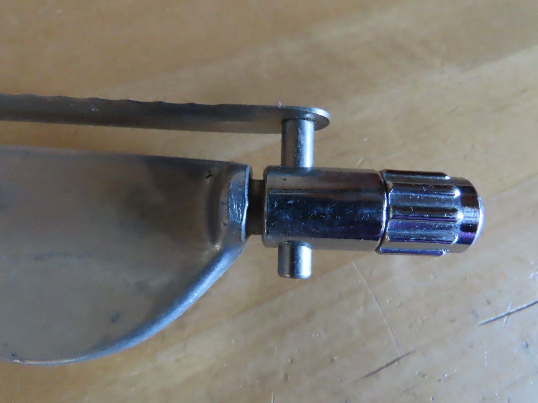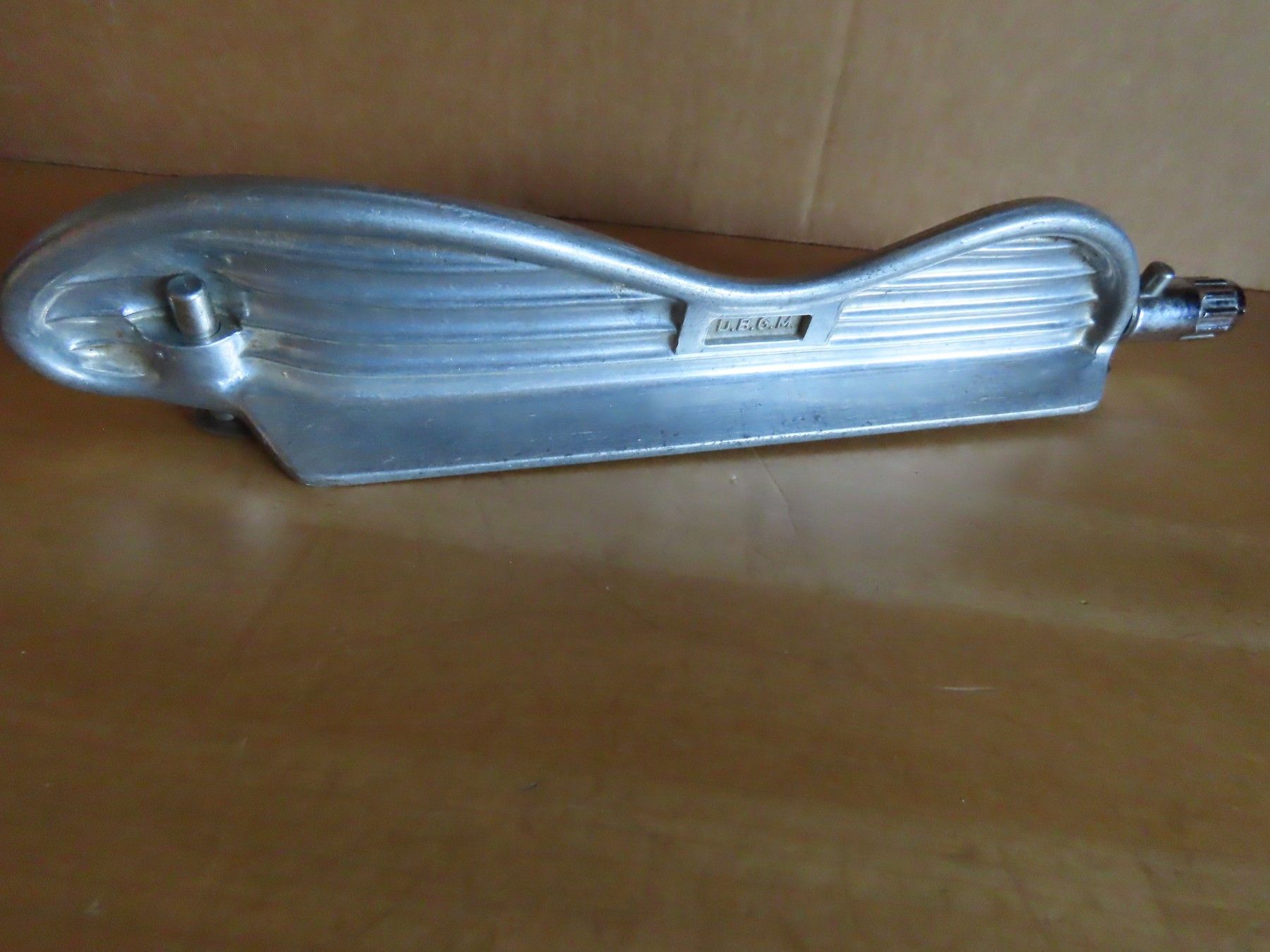 Maße: ca. 27,7cm breit x 5 cm hoch x ca.3,3 cm---immer an der breitesten Stelle gemessen Material: Metall NICHT magnetisch Rostfrei-Stainless ist leicht verschmutzt,hat feine Kratzer, leider lässt das Rad sich NICHT drehen, aber vielleicht bekommt man es wieder gängig Gebr. Schneble Gailingen... Mehr