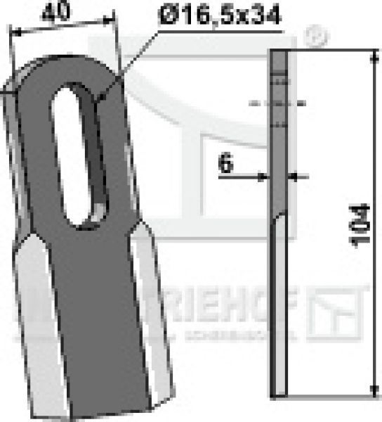 Messer Mulchmesser 63-FEI-49 passend für Howard Ferri Mulcher Technische Datem: Messer mit Langloch Best.-Nr. 63-FEI-49 Gewicht 0.148 kg Dicke 6 mm Länge 104 mm Breite 40 Bohrung 16.5 X 34 mm Artikel passend für Fabrikat: Howard 222022424 Ferri 0901153 Obenstehende Original Ersatzteilnummern dienen