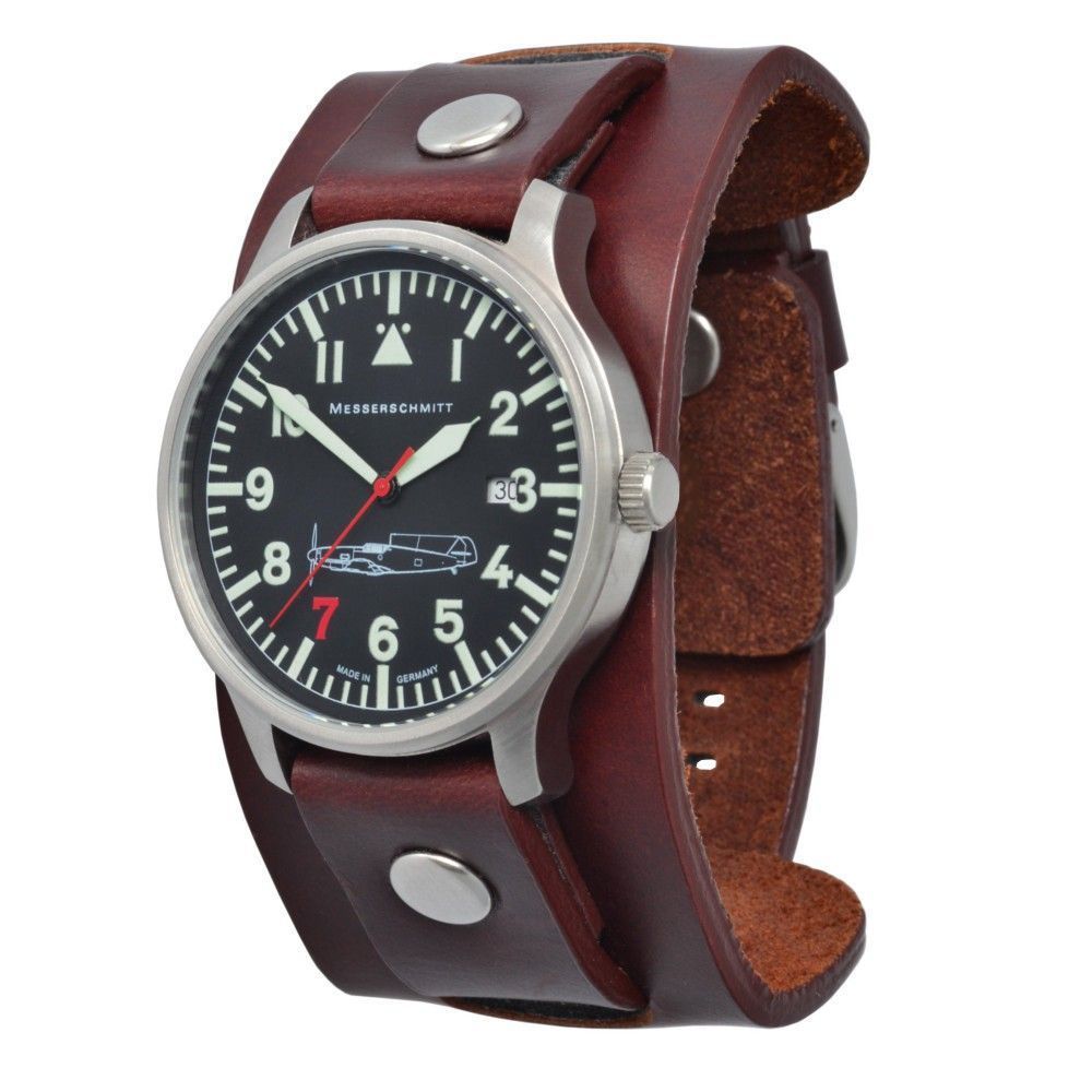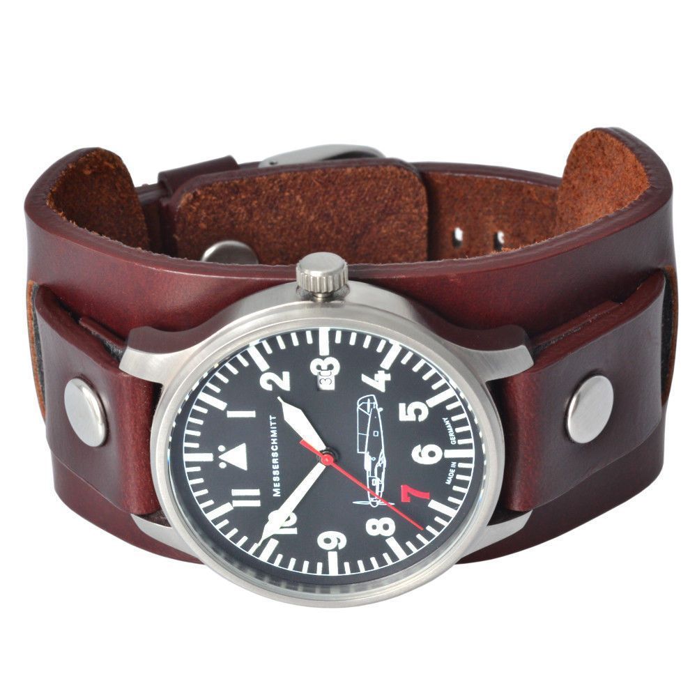 Messerschmitt Fliegeruhr ME109-42R7 Rote 7 wasserdicht 5ATM mit Unterlederband