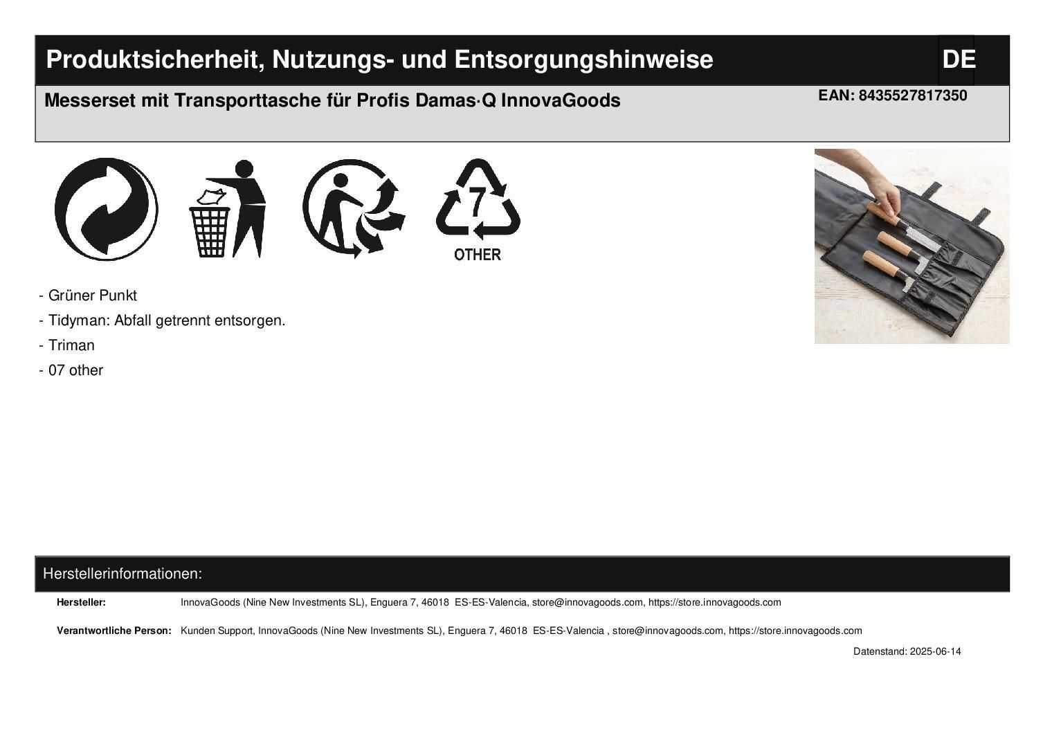 Messerset mit Transporttasche für Profis Damas·Q InnovaGoods