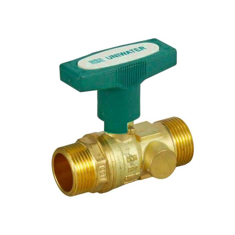 • System-Kugelhahn UNIWATER • aus Messing • DVGW-Zulassung • Trinkwassergeeignet nach DIN EN 13828 • mit ISO-T Griff grün • voller Durchgang