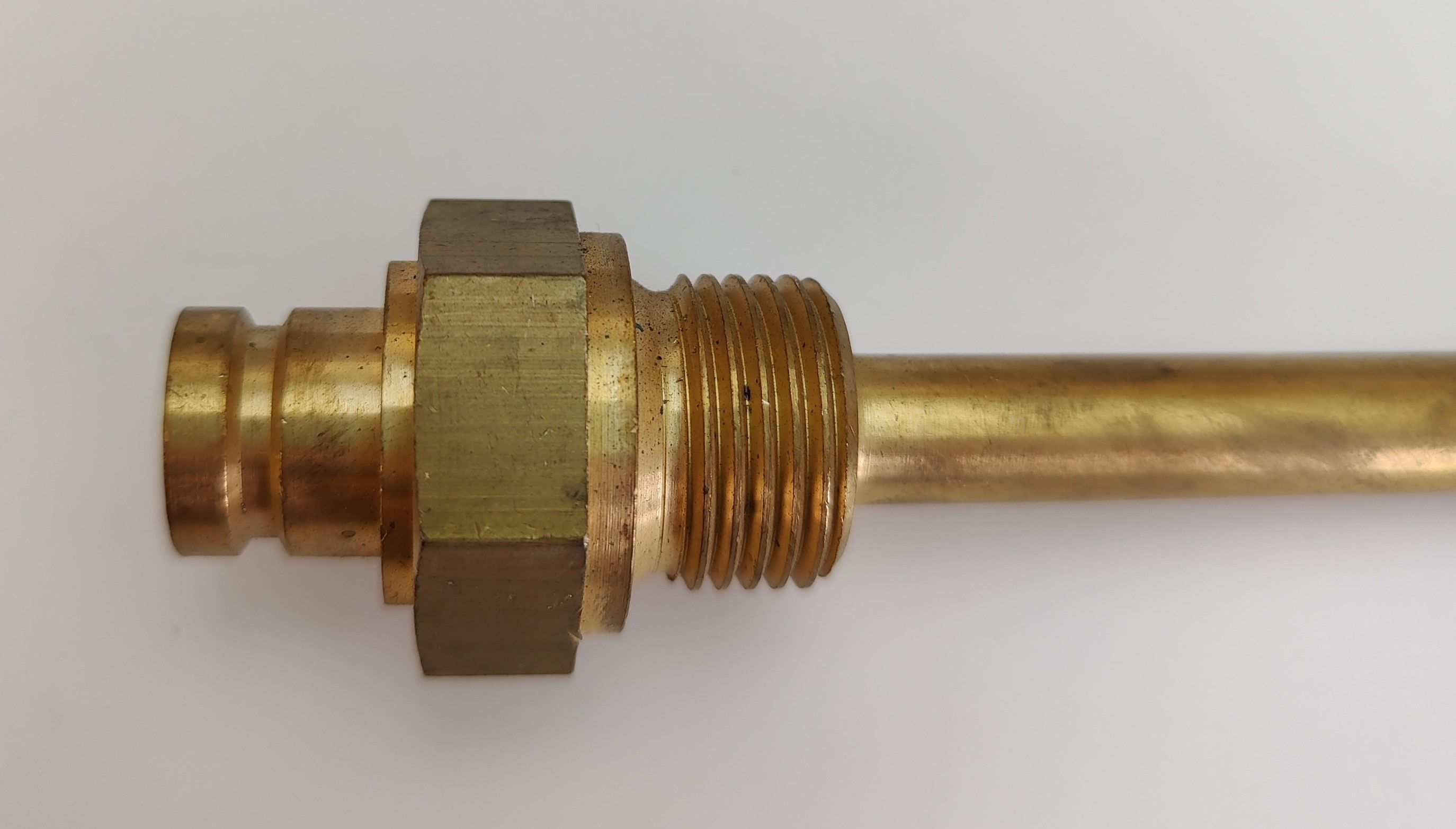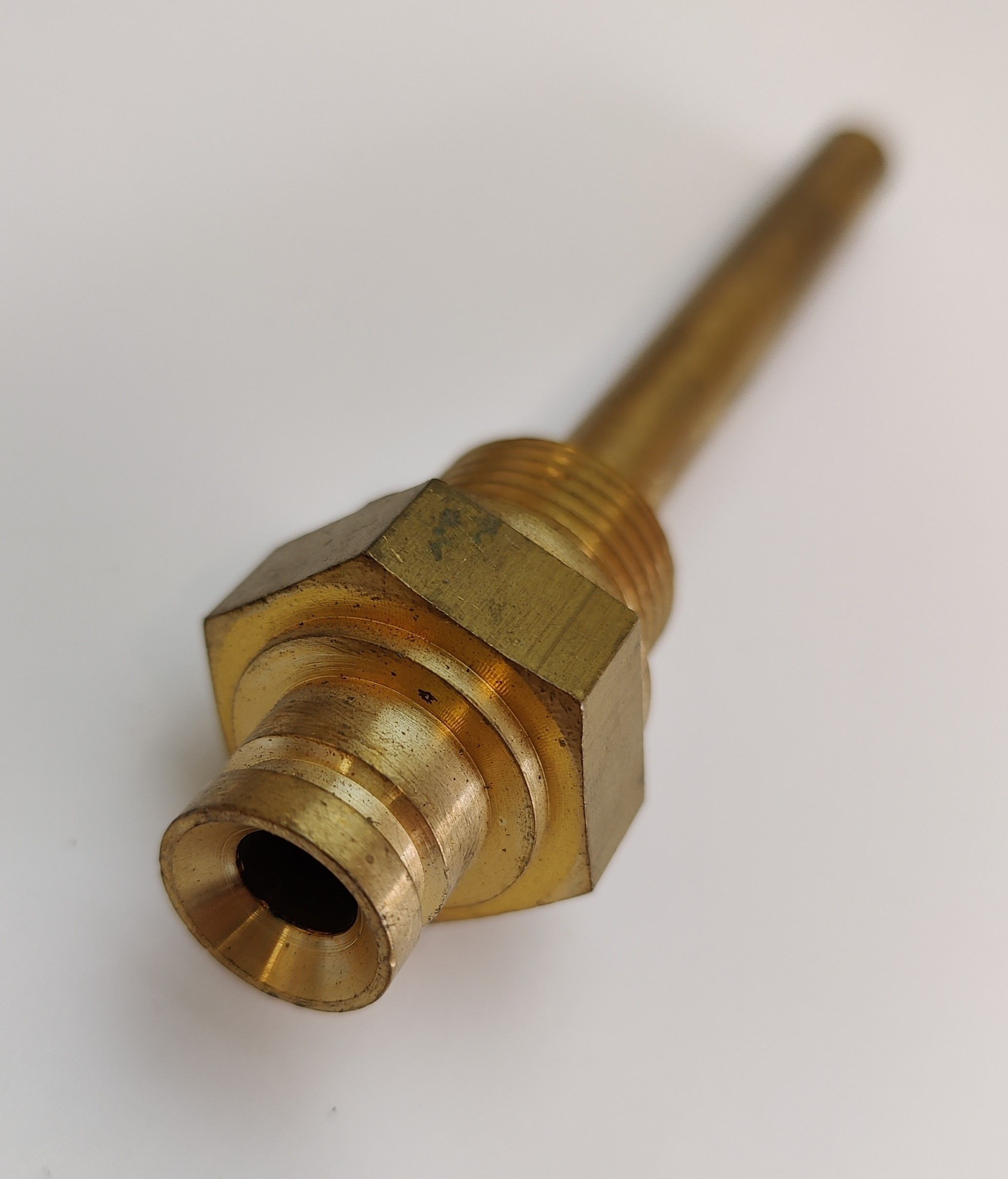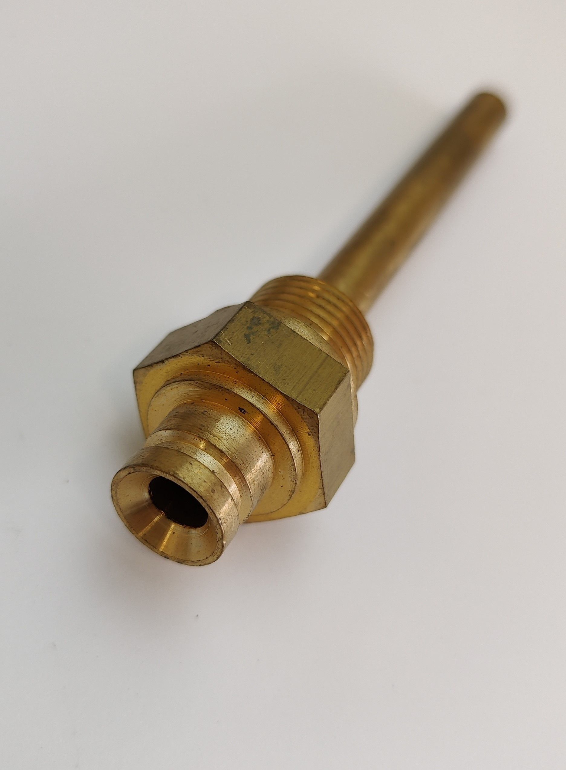 Messing Tauchhülse / Schutzrohr L=130 mm Ø 10 mm AG 1/2 Zoll DN 15