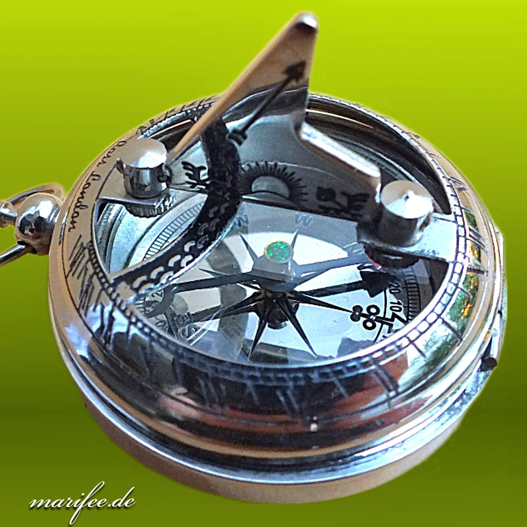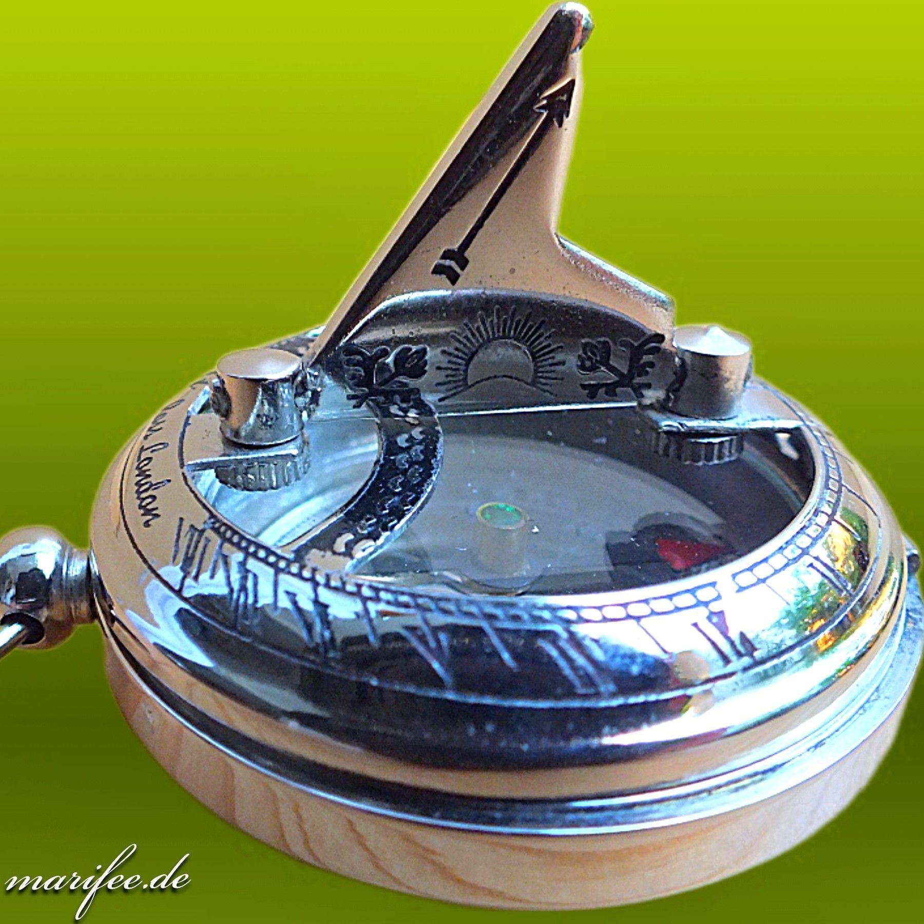 Messingkompass mit Sonnenuhr und Klappdeckel Art.-Nr. 13038