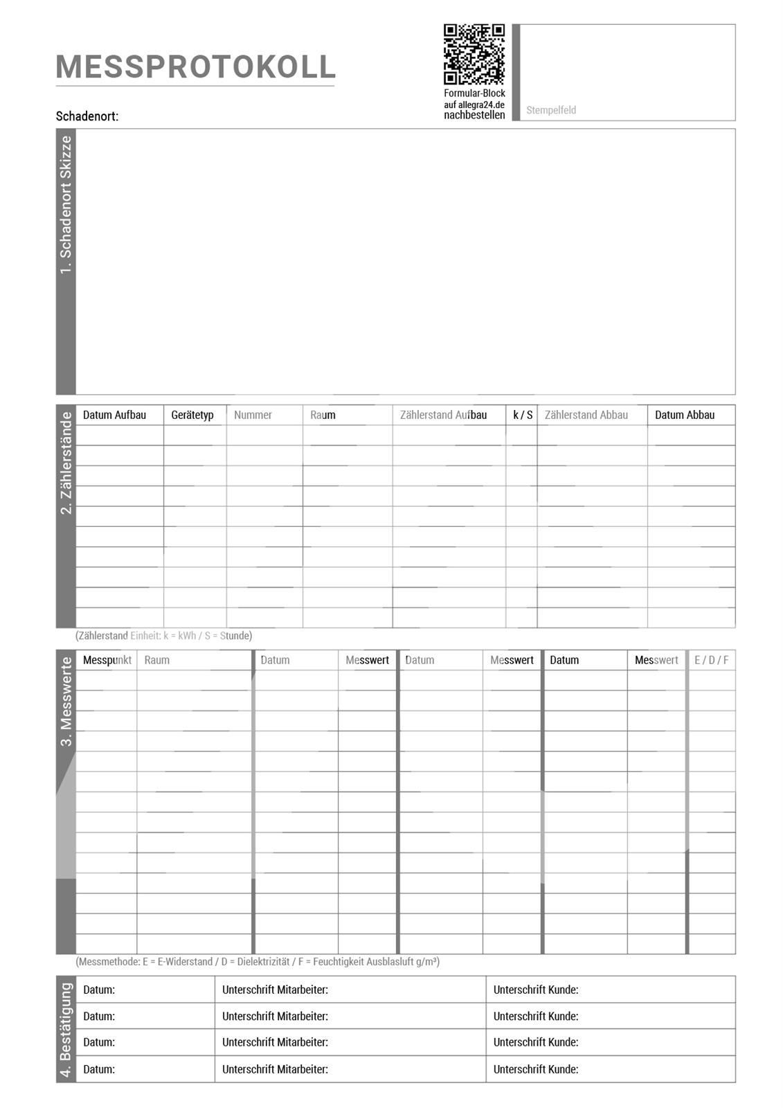 Messprotokoll Formular A4-Block selbstdurchschreibend