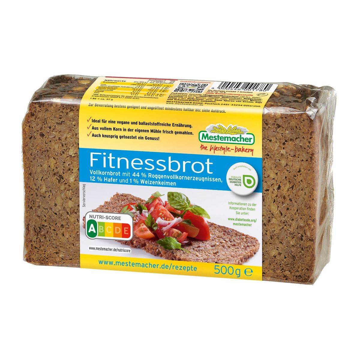 Mestemacher Fitnessbrot Vollkorn Roggen Hafer und Weizenkeimen 500g