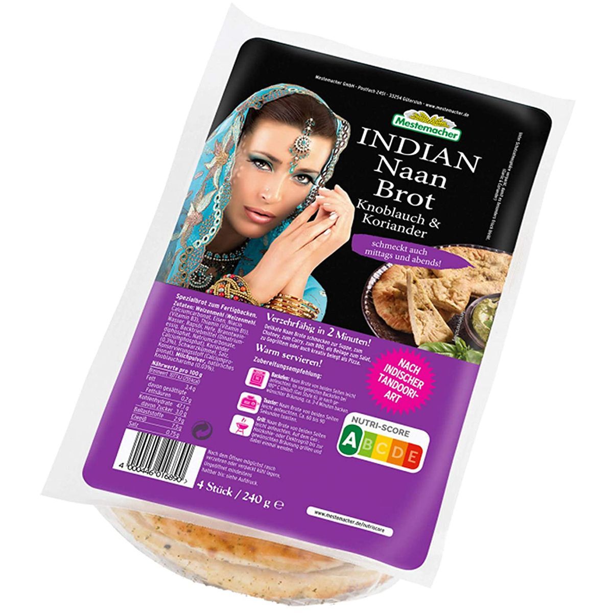 Mestemacher Indian Mini Naan Brot Knoblauch und Koriander 240g
