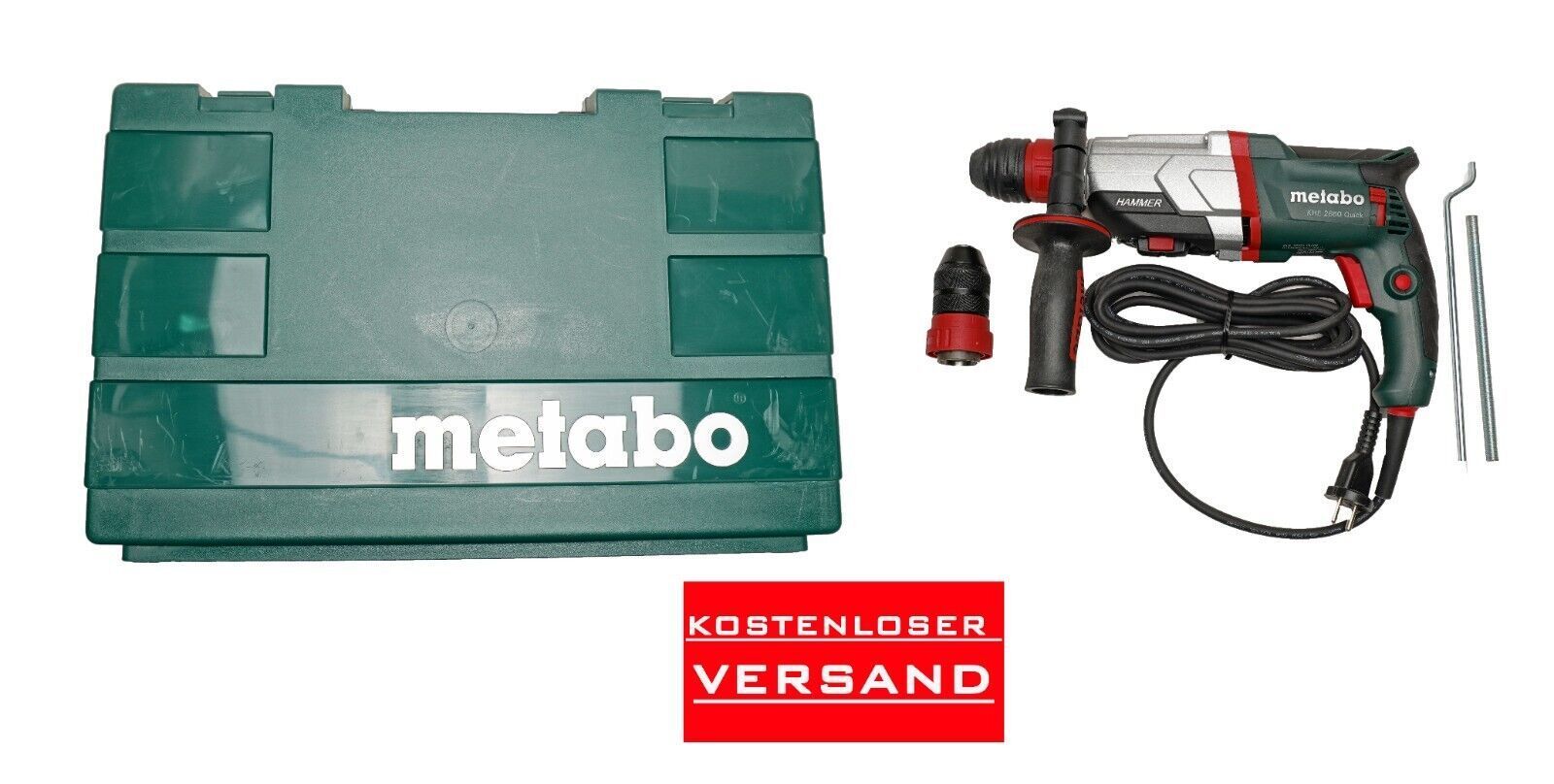 • Kombihammer mit 3 Funktionen: Hammerbohren, Bohren und Meißeln • Metabo Quick: Schnellwechsel zwischen SDS-Plus-Hammerfutter und Schnellspannbohrfutter zum Bohren in Holz und Metall • Perfekte Ergonomie dank handnahem Schwerpunkt und optimierter Griffkontur • Gegen Beschädigung und Staub geschützt