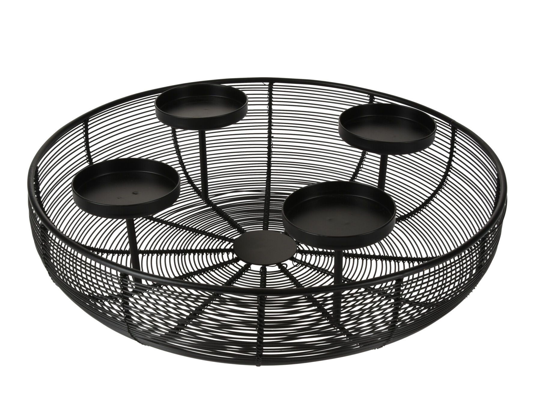 Metall Advents Kranz schwarz - 37 cm - Tisch Deko Kerzen Halter ohne Docht mit Korb