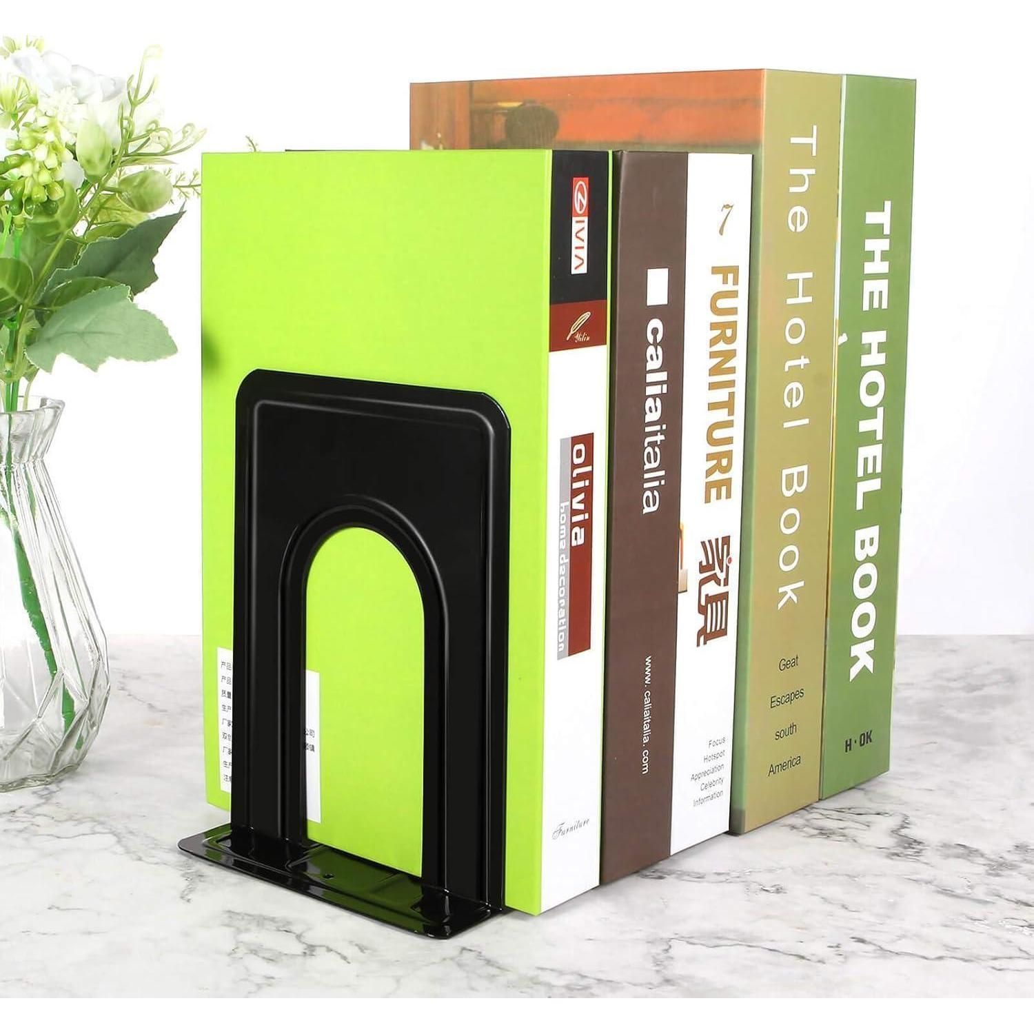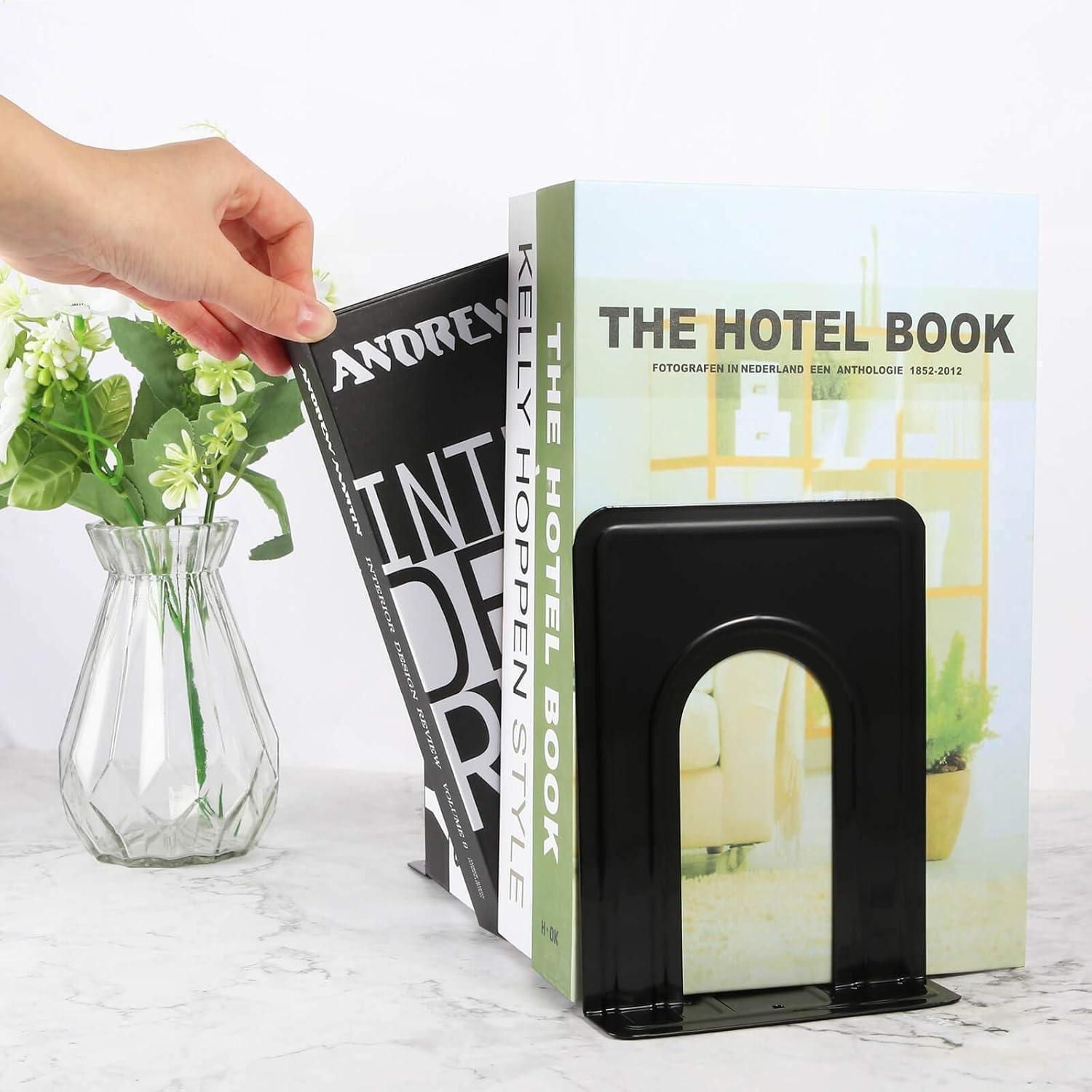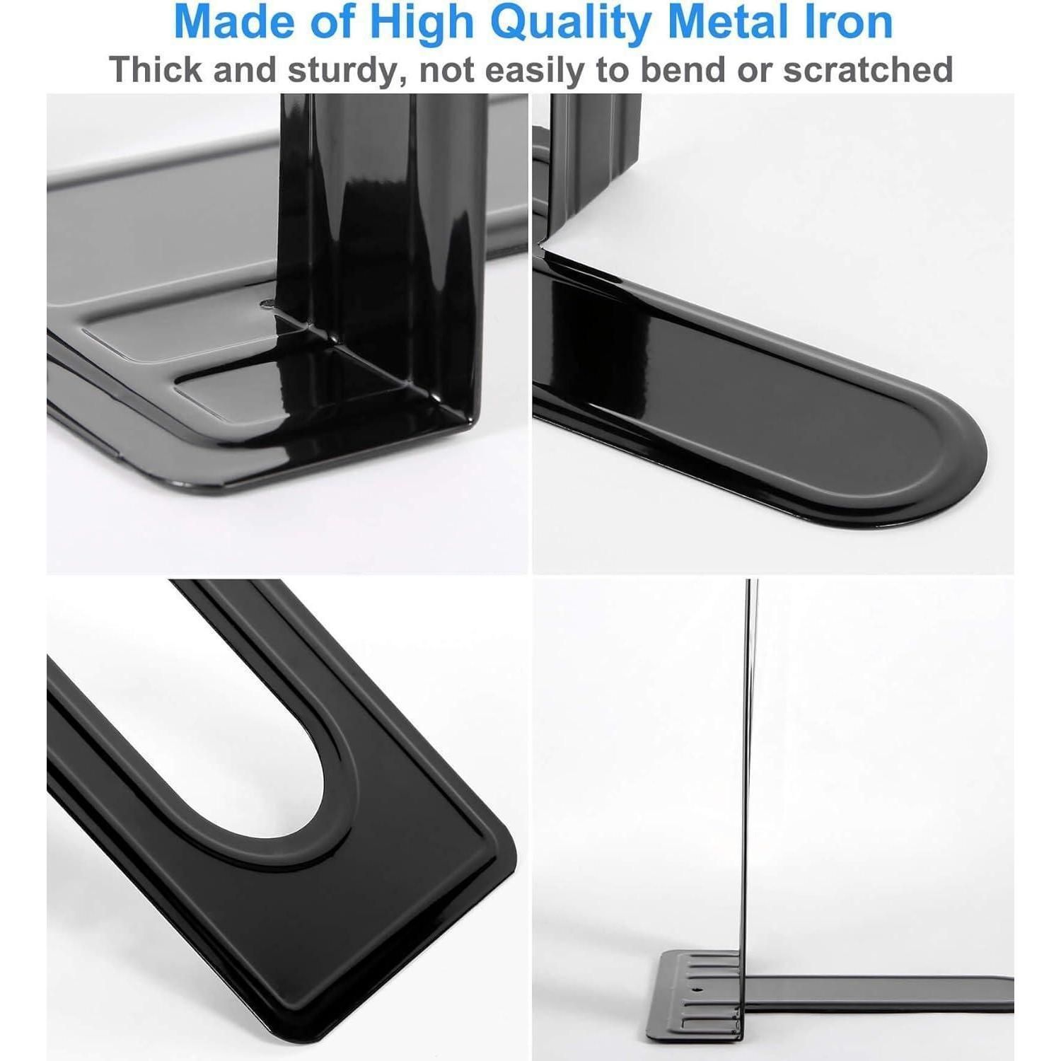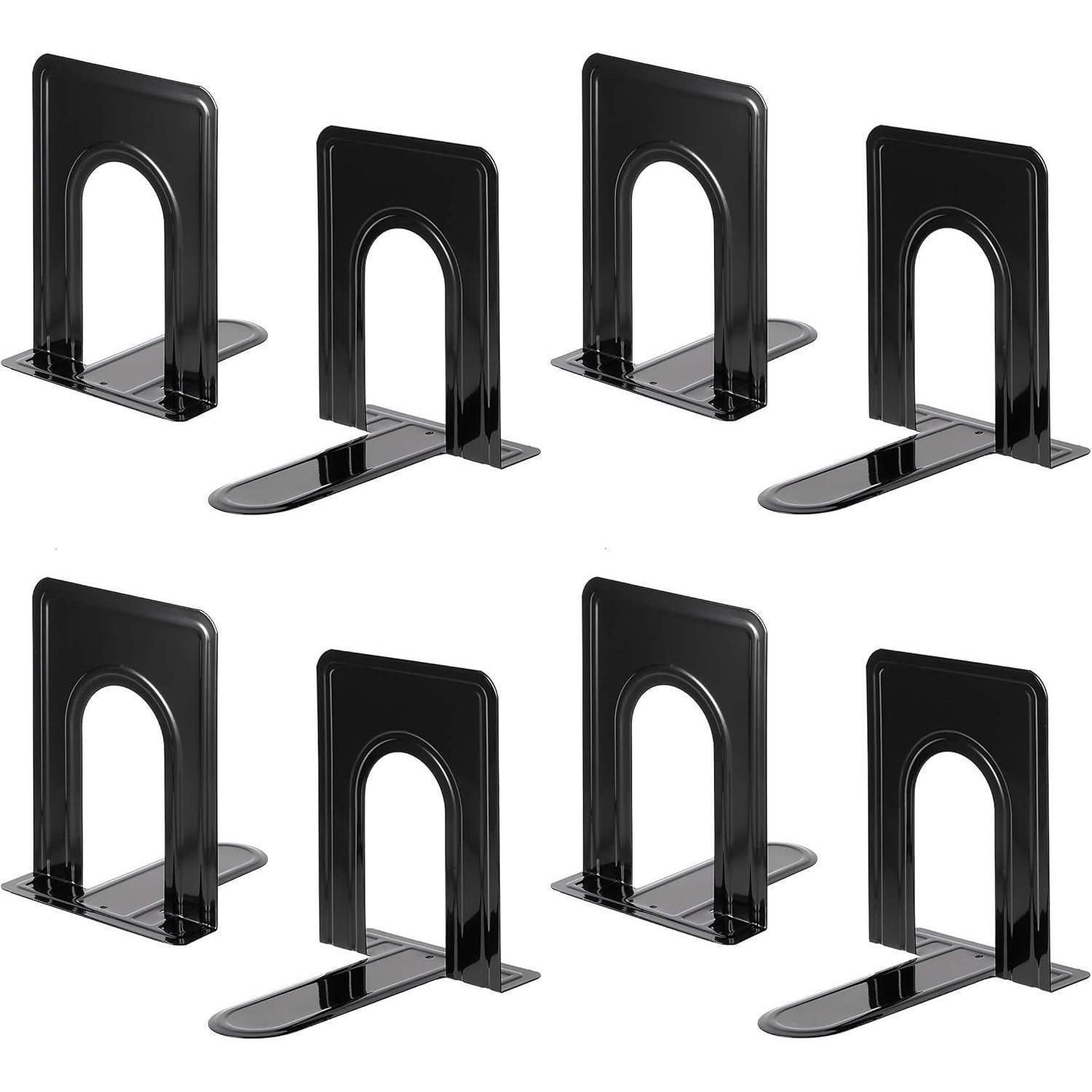 Metall-Buchstützen 4 Paar Schwarz rutschfest abgerundete Ecken robust