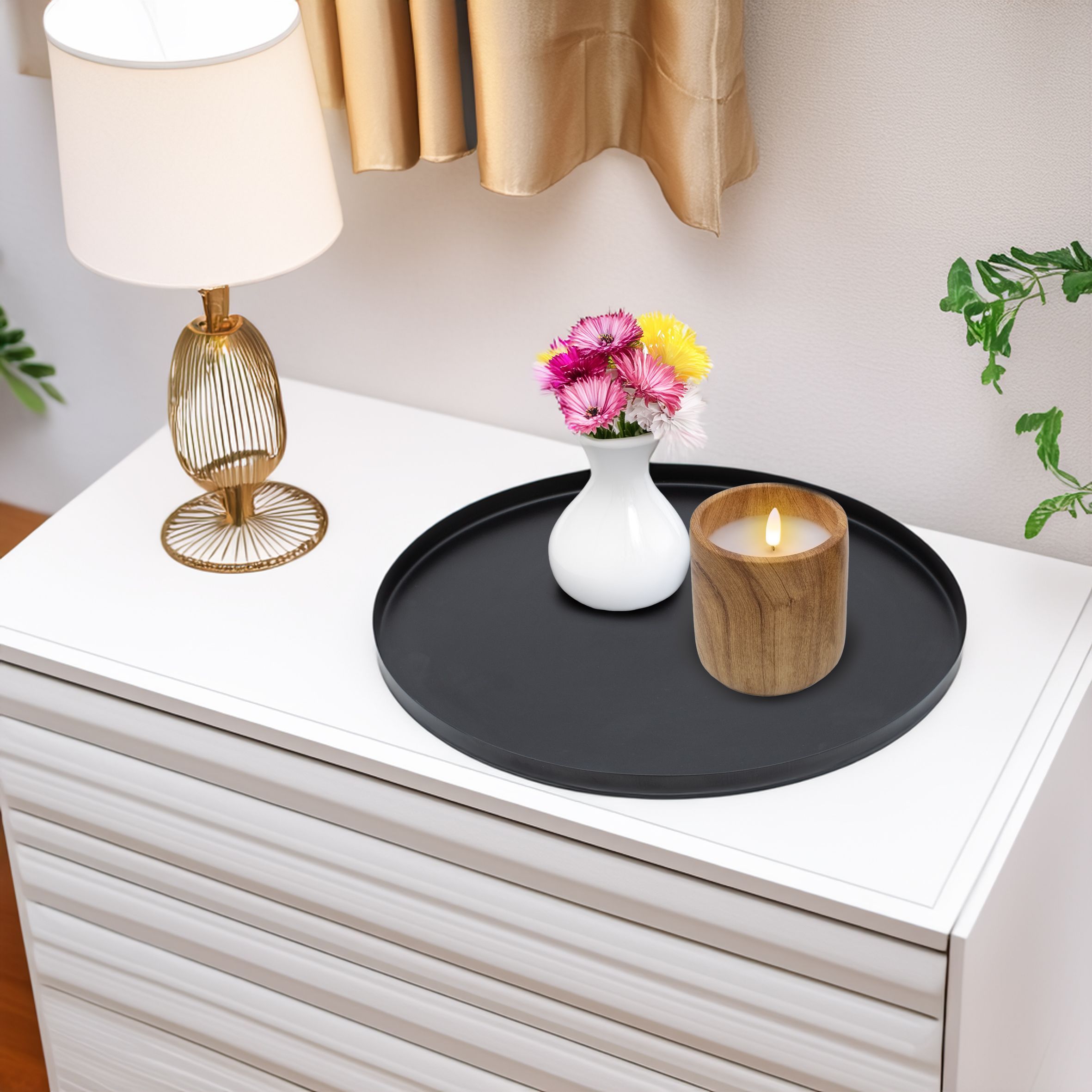 Metall Deko Tablett in schwarz - 30 cm - Kerzenteller Servierplatte Geschenktablett