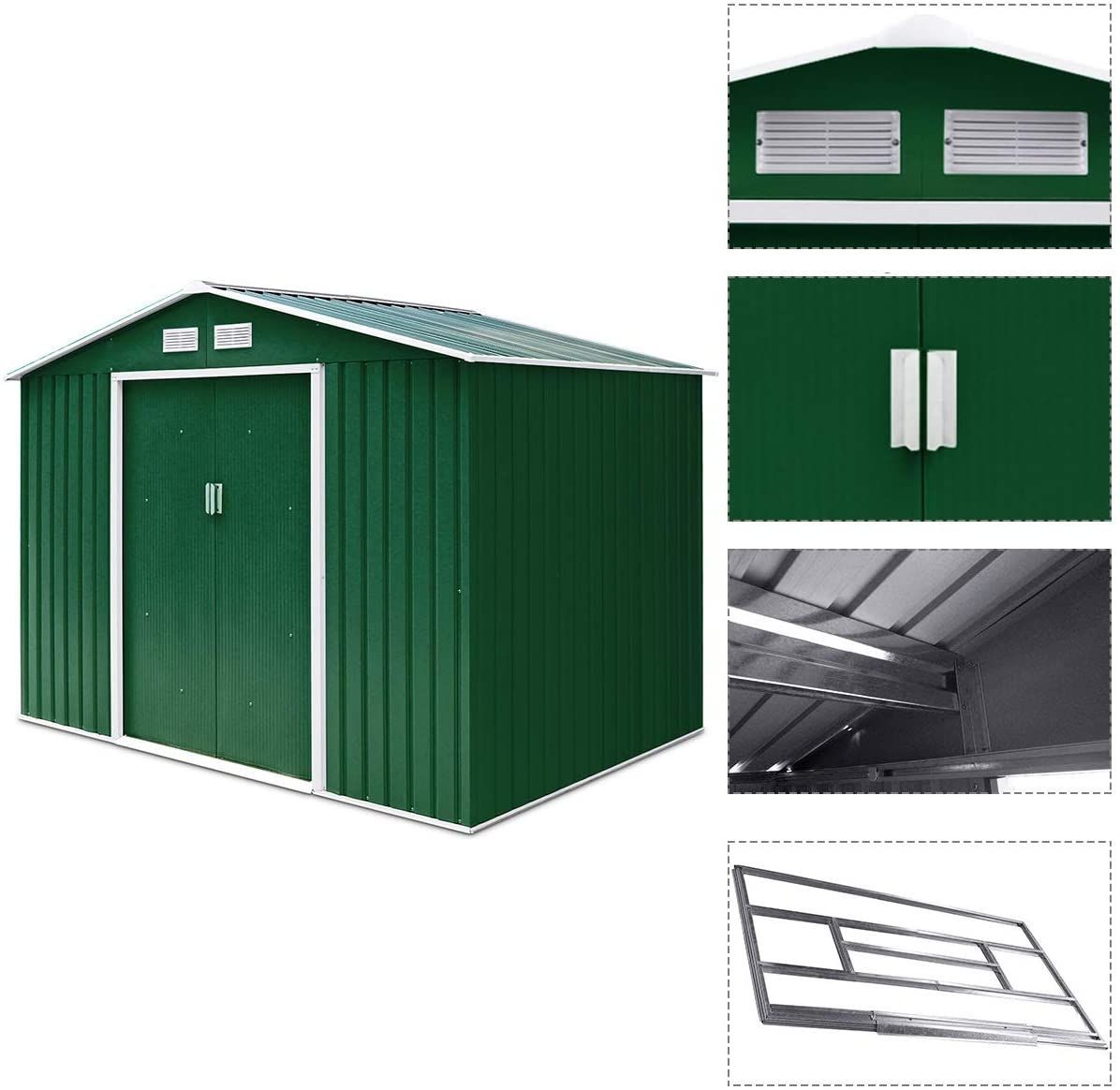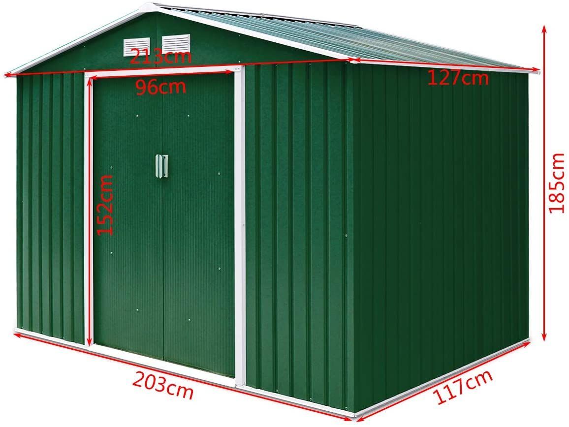 Metall Gerätehaus 213x127x185cm, Gartenhaus Geräteschuppen inkl. Metallfundament