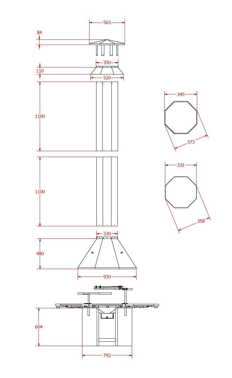Metall Grill 8 Ecken mit umlaufendem Tisch Bausatz für Ihre bestehende Grillkota