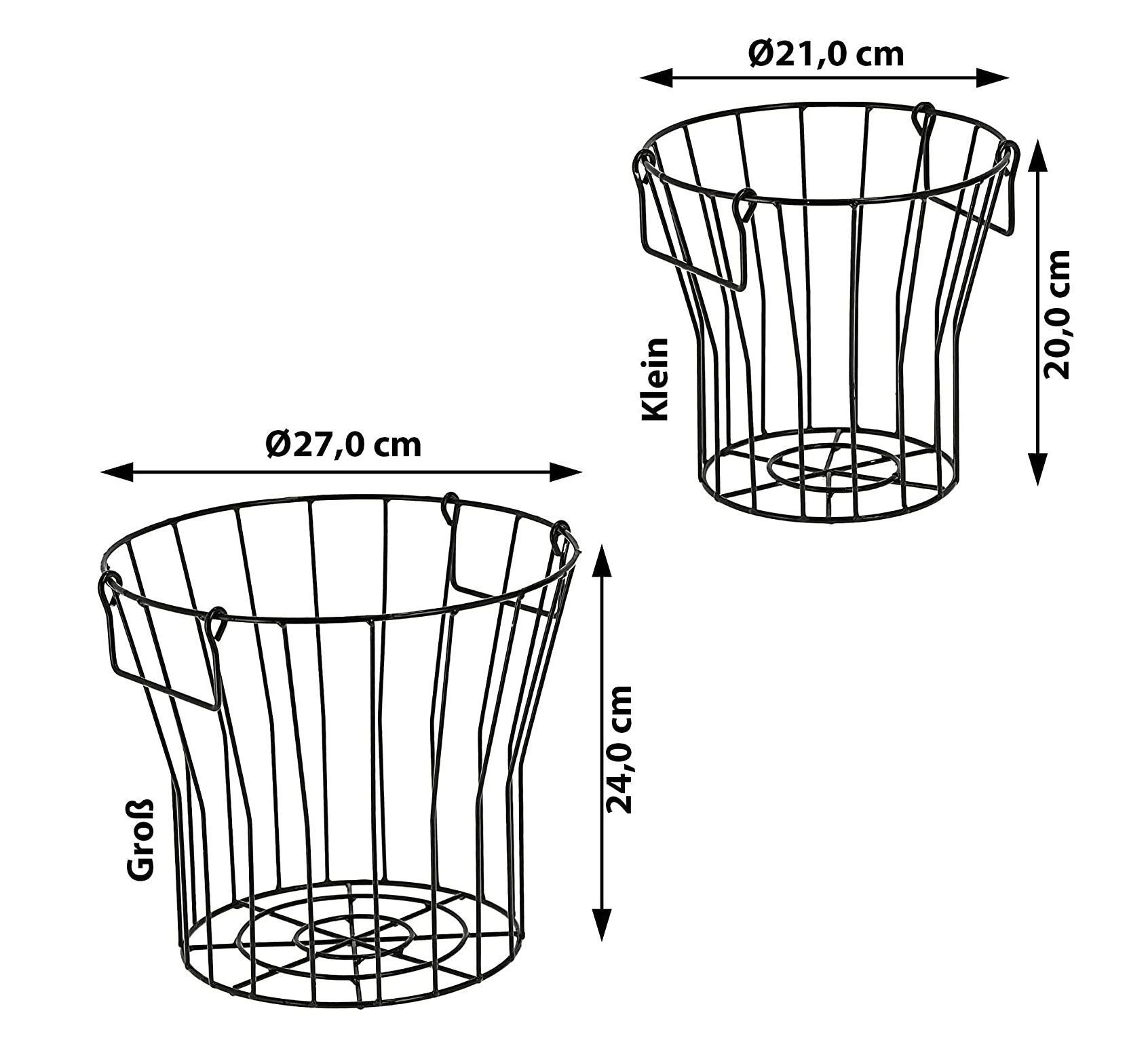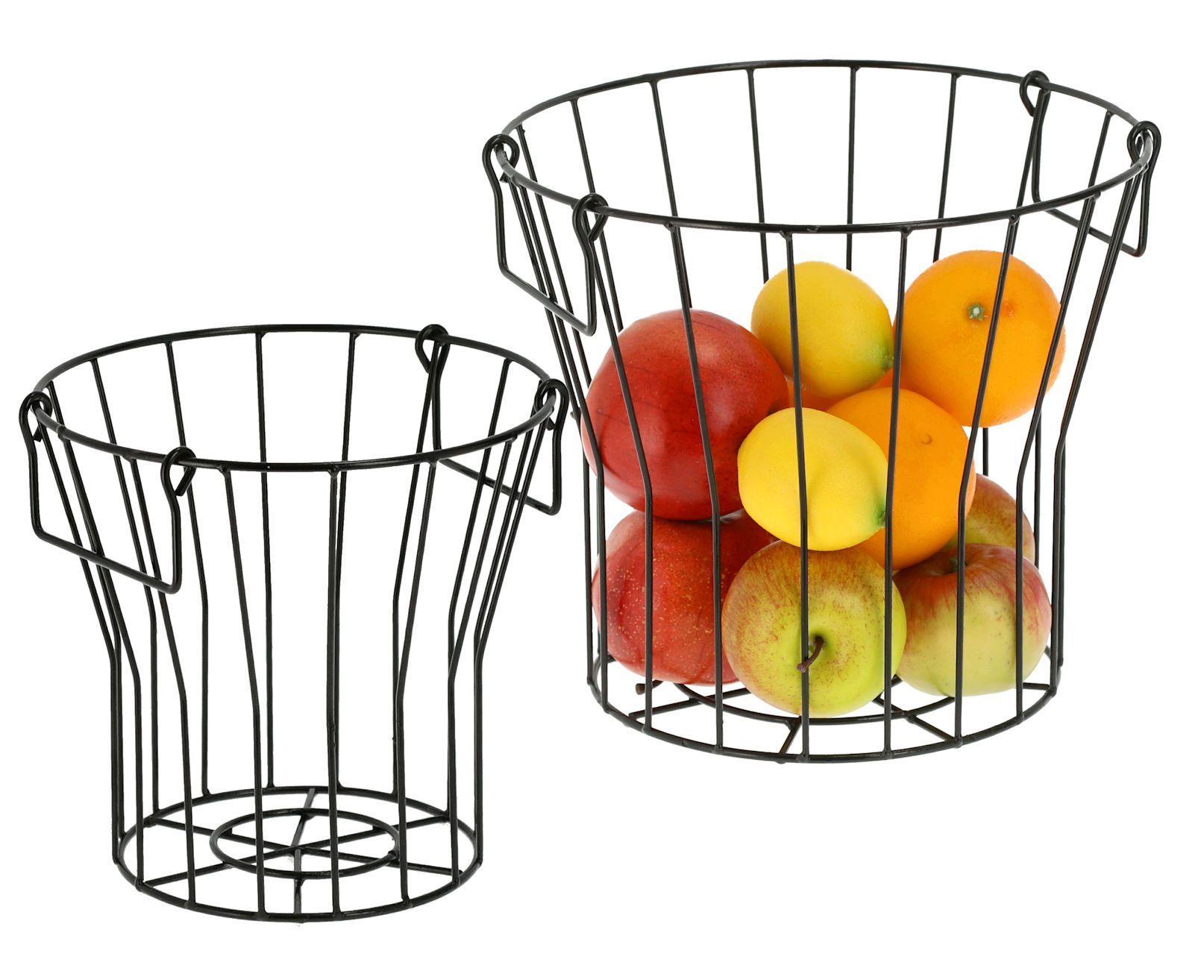 Metall Obst Korb - 2er Set - Deko Aufbewahrung mit Henkel Gemüse Schale Früchte