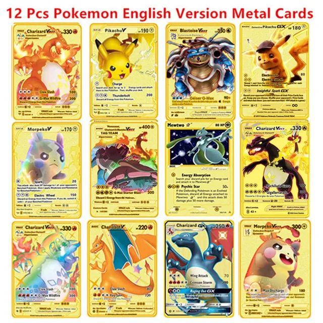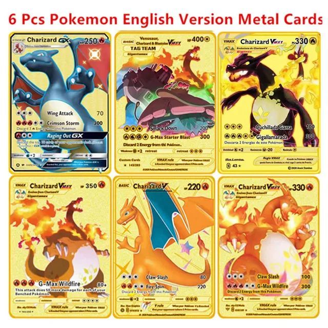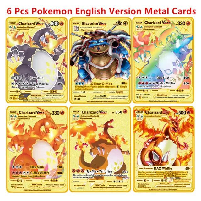 Metall Pokmon Karten Charizard Pikachu Blastoise Mewtwo Sammelkarten Spielzeug