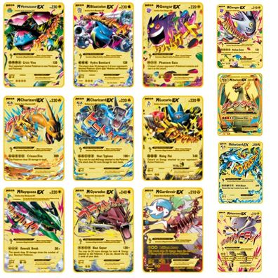 Metall Gold Pokmon Karten VMAX Charizard GX Pikachu Mewtwo Sammelkarten Geschenk