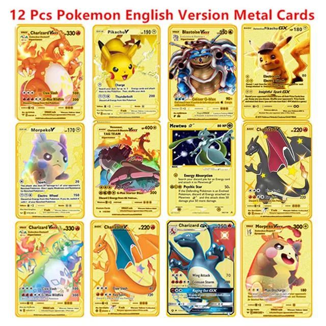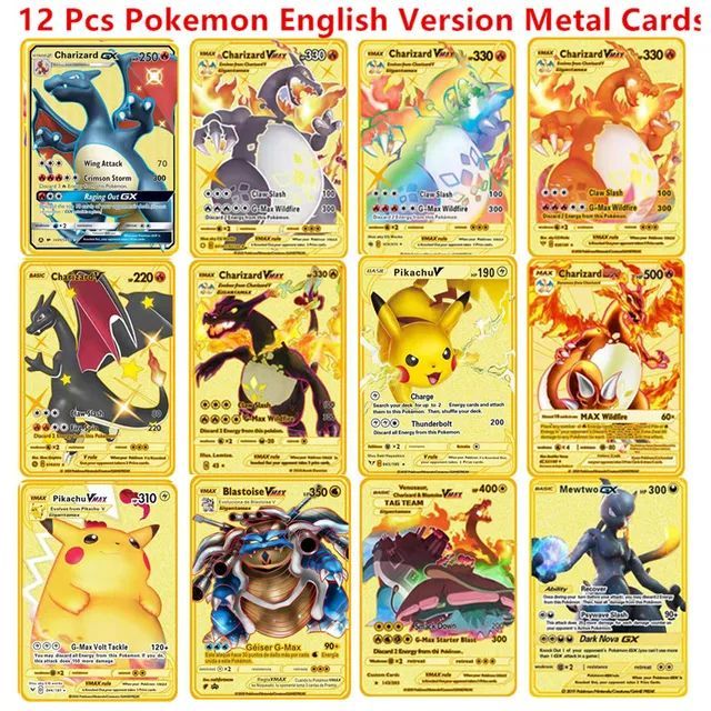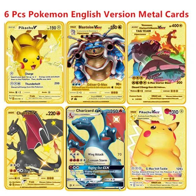 Metall Pokmon Karten Pikachu Charizard Mewtwo Blastoise VMAX Sammelkarten Geschenk