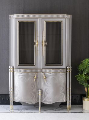 Vitrine Beige Esszimmer Schrank Regal Modern Stil Elegantes Möbel Metall Neu