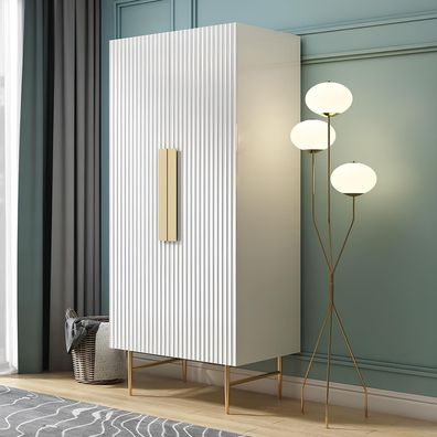 Schlaf Zimmer Schrank Designer Hochglanz Metall Weiß Luxus Schränke Regal Holz