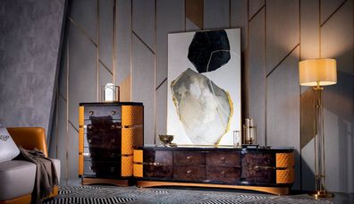 Designer Kommode Anrichte Schrank Regal Metall Luxus Wohn Zimmer Holz Kommoden