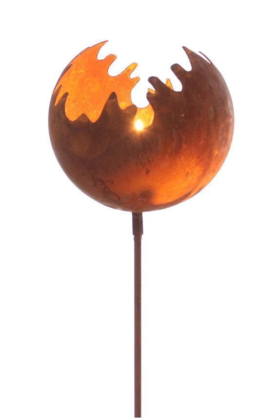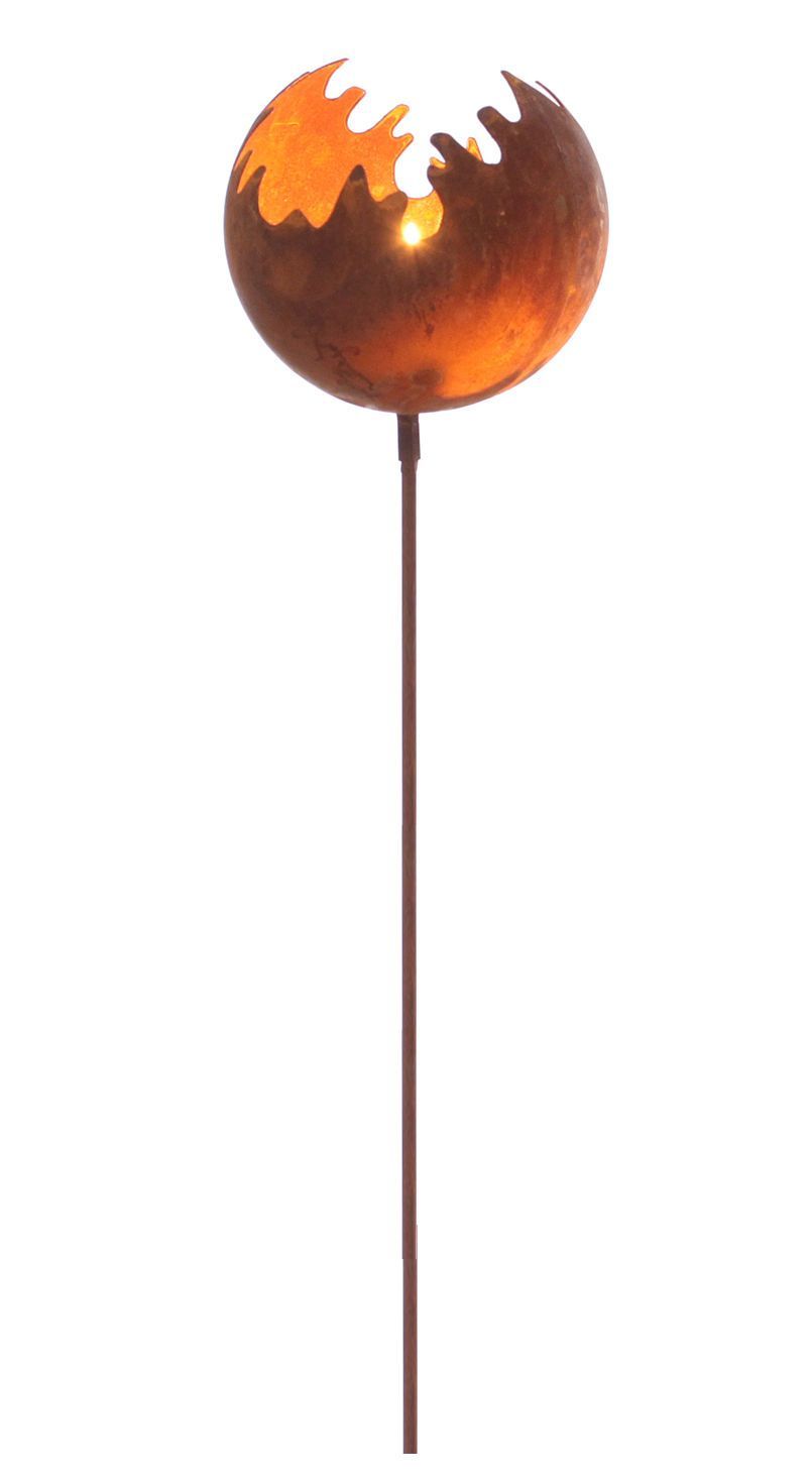 Metall Rost Feuer Ball - 98 x 15 cm / groß - Deko Windlicht Garten Kugel Stecker