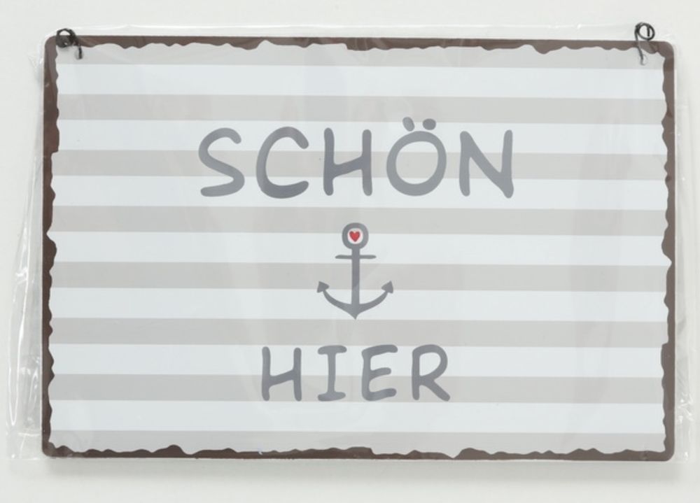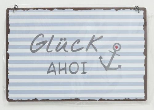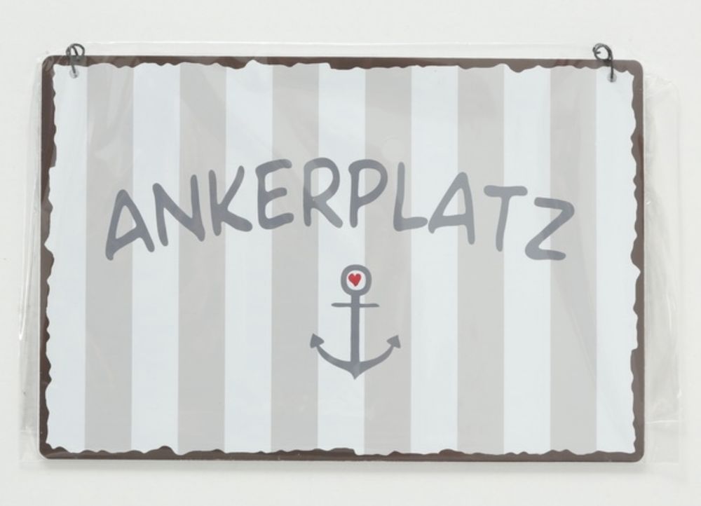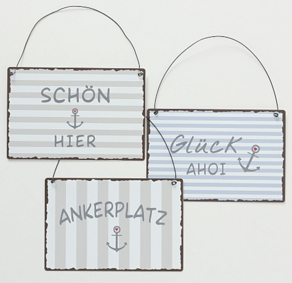 Boltze Metall Schilder Maritim Ankerplatz Glück Ahoi Schön Hier Grau Weiß Blau L. 21 cm