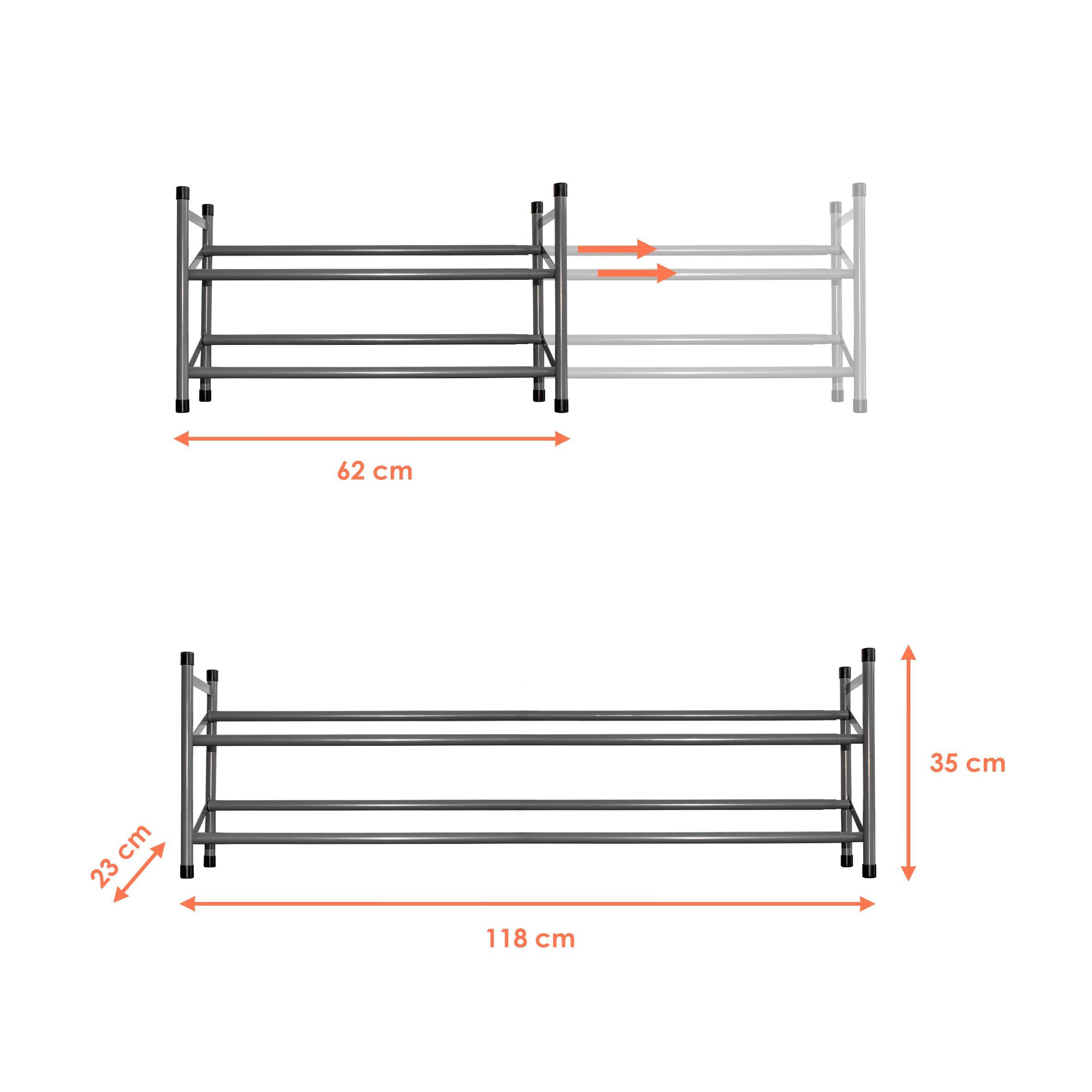 Metall Schuhregal ausziehbar - 62-118 cm - Teleskop Schuh Ablage Ständer Bank