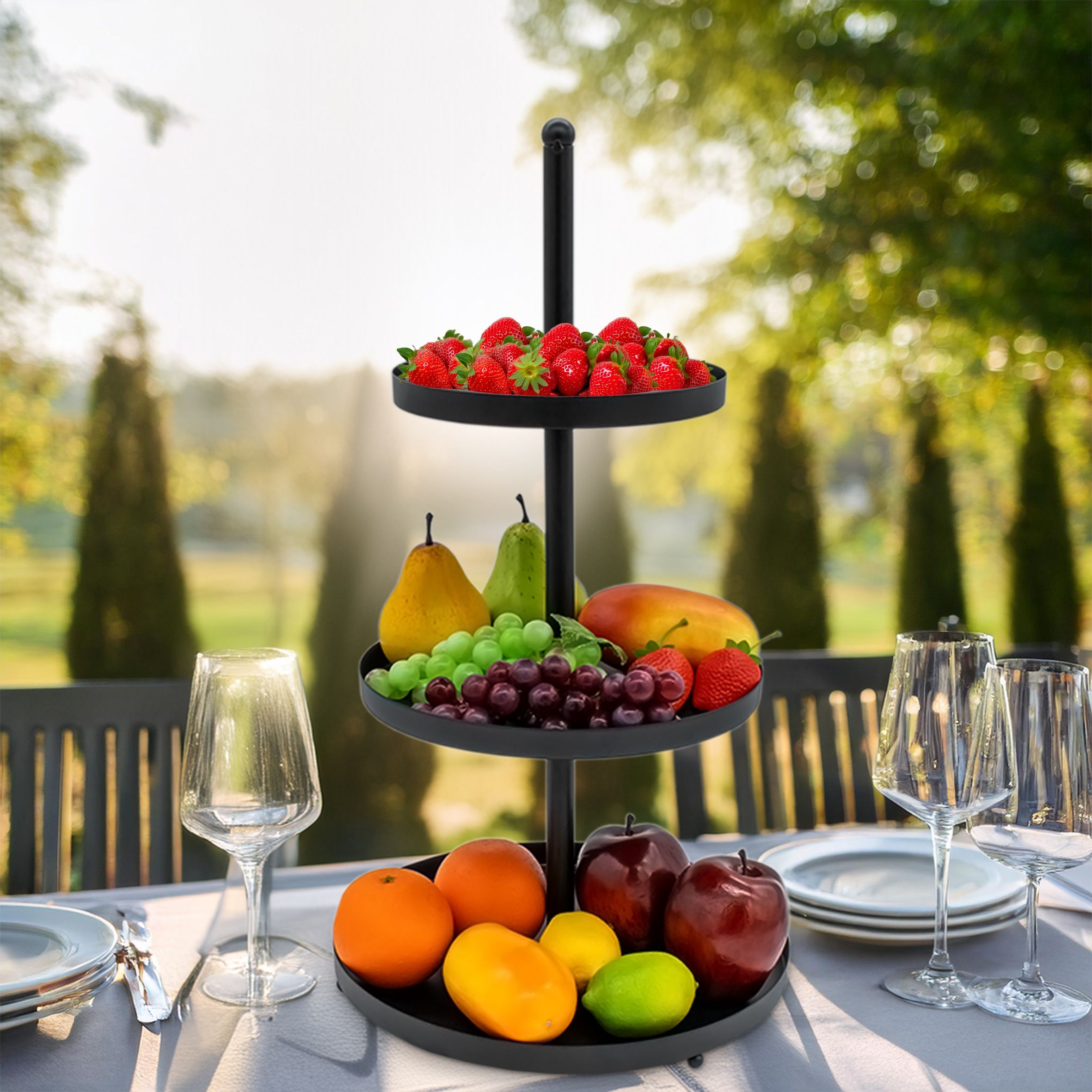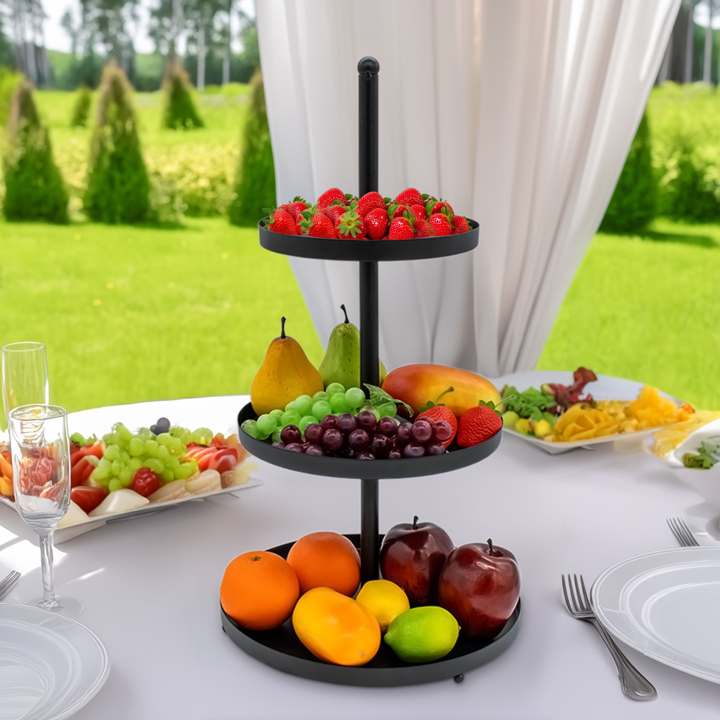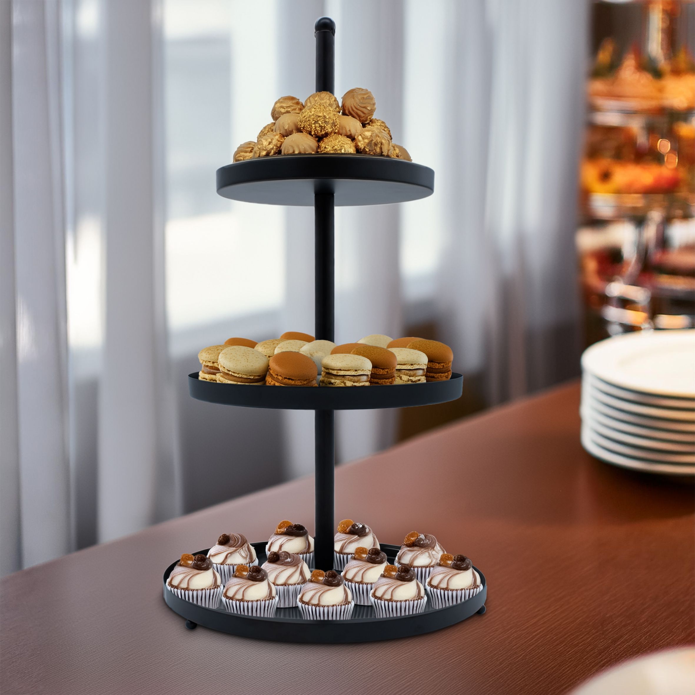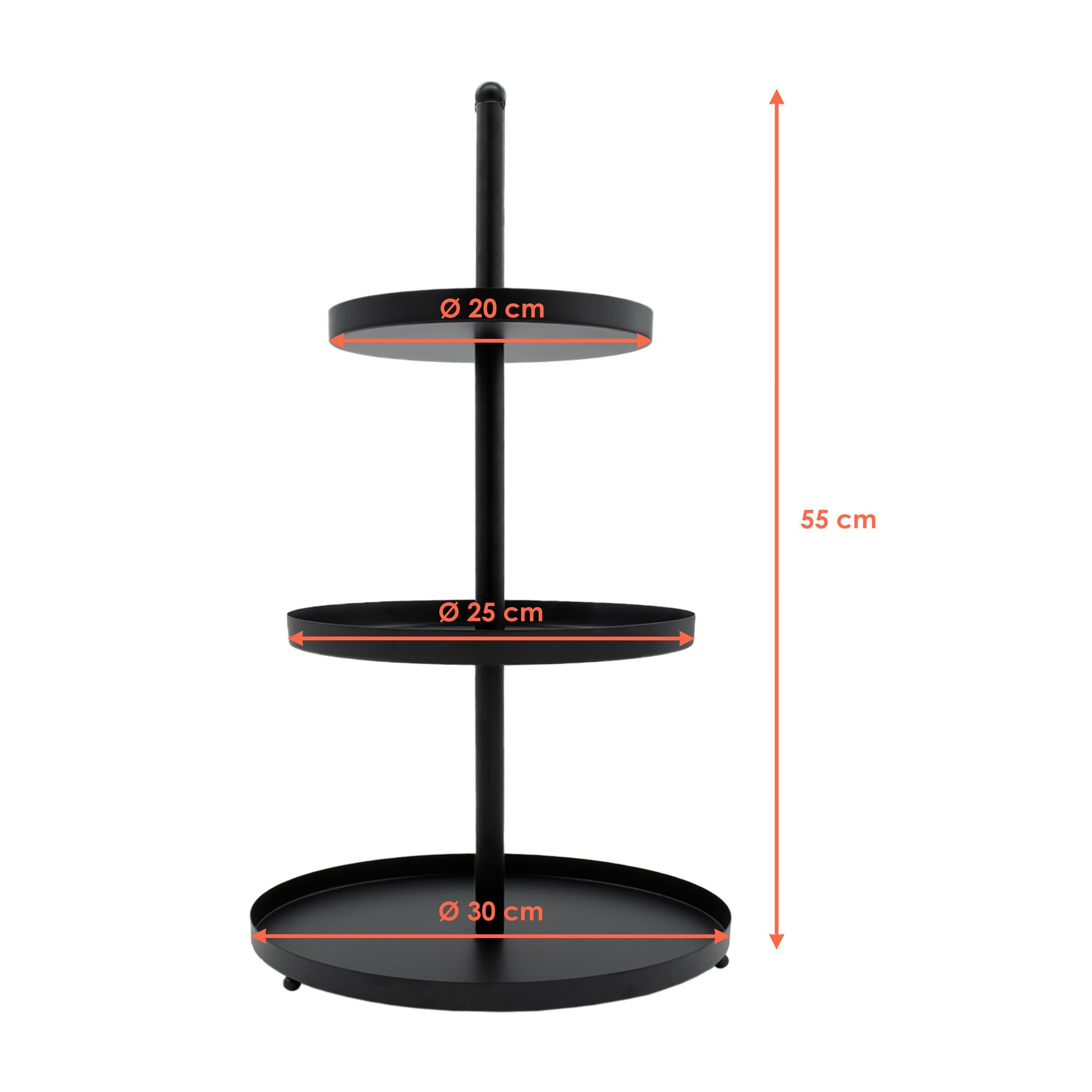 Metall Servier Ständer 3 Etagen schwarz - 56 x 30 cm - Snack Obst Kuchen Etagere