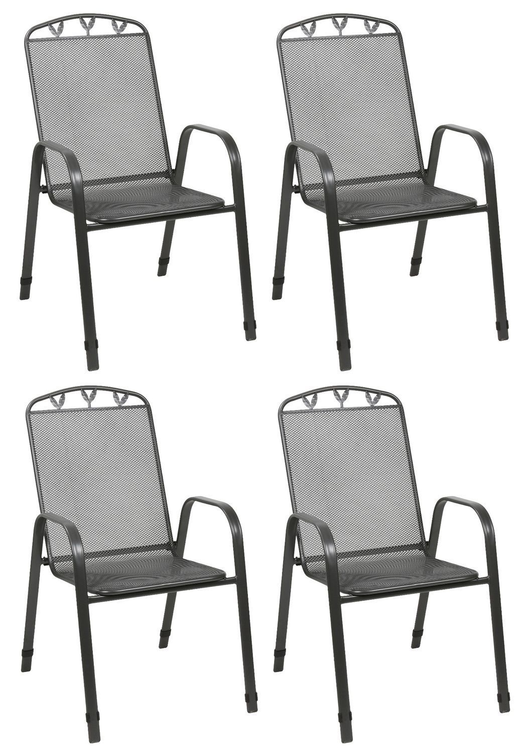 Metall Stapelstühle 4er-Set Anthrazit Gartenstühle Terrassenstühle Stapelsessel