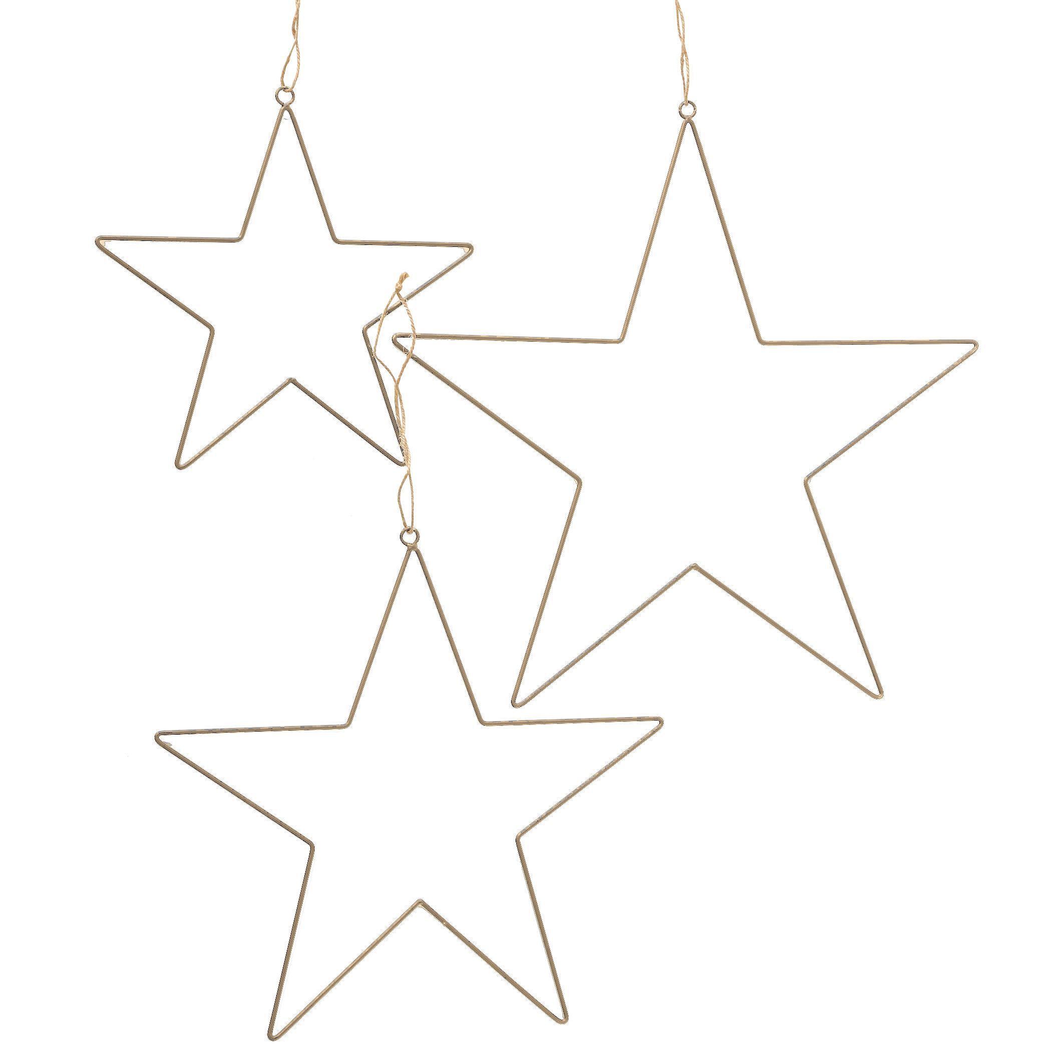 Deko Stern 3er Set zum Hängen - aus Metall in gold je 1x 50 / 40 / 30 cm