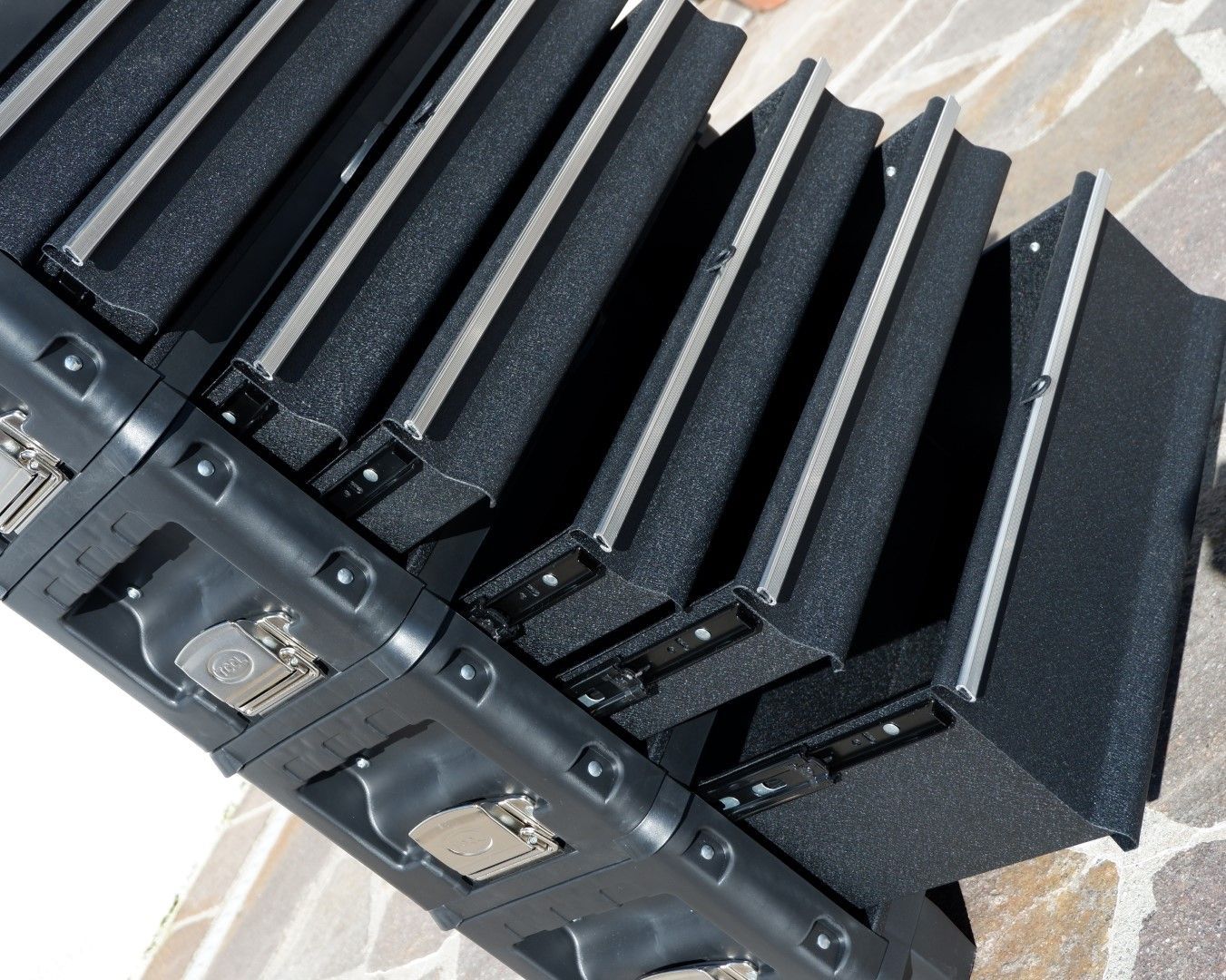 Sicherheitshinweise Werkzeugtrolley Werkzeugkoffer - Halten Sie beim Auspacken der Einzelteile Kleinkinder fern. Die Verpackung beinhaltet diverse Kleinteile (z.B. Schrauben und Beschläge), die verschluckt werden könnten. - Erstickungsgefahr! Plastikbeutel/Verpackung sind kein Spielzeug, bitte von Babys und Kleinkinder fernhalten, Plastikbeutel nicht über den Kopf ziehen. - Das Produkt ist kein Spielzeug, Kinder fernhalten. - Laden immer vorsichtig öffnen und schließen, man kann sich die Finger einklemmen - Immer stehend transportieren und beim Transport immer gut im PKW/LKW befestigen - Nicht über Stufen fahren. Das Fahrwerk kann beschädigt werden. - Bei der Zweckentfremdung des Produktes besteht erhebliche Verletzungsgefahr. - Bei Zweckentfremdung kann das Produkt erheblich beschädigt werden. - Sollten Beschädigungen auftreten oder/und sichtbar sein, verwenden sie das Produkt nicht und kontaktieren sie uns. English Safety instructions Tool trolley Tool case - Keep small children away when unpacking the individual parts. The packaging contains various small parts (e.g. screws and fittings) that could be swallowed. - Choking hazard! Plastic bags/packaging are not toys, please keep away from babies and small children, do not pull plastic bags over your head. - The product is not a toy, keep children away. - Always open and close the shop carefully, you can pinch your fingers - Always transport upright and always secure well in the car/truck during transport - Do not drive over steps. The chassis can be damaged. - There is a considerable risk of injury if the product is misused. - The product can be seriously damaged if it is misused. - If damage occurs and/or is visible, do not use the product and contact us. Français Consignes de sécurité Chariot à outils Mallette à outils - Lors du déballage des pièces détachées, tenez les jeunes enfants à l'écart. L'emballage contient diverses petites pièces (p. ex. des vis et des ferrures) qui pourraient être avalées. - Risque d'étouffement ! Les sacs en plastique/l'emballage ne sont pas des jouets, veuillez les tenir à l'écart des bébés et des jeunes enfants, ne pas mettre le sac en plastique sur la tête. - Le produit n'est pas un jouet, tenir les enfants à distance. - Toujours ouvrir et fermer le magasin avec précaution, on peut se coincer les doigts. - Toujours transporter en position debout et toujours bien fixer dans la voiture/le camion lors du transport. - Ne pas conduire sur des marches. Le châssis peut être endommagé. - Il existe un risque important de blessure si le produit est utilisé à d'autres fins. - Le produit peut être considérablement endommagé s'il est utilisé à d'autres fins. - Si des dommages apparaissent ou/et sont visibles, n'utilisez pas le produit et contactez-nous. Español Instrucciones de seguridad Carro de herramientas Maletín de herramientas - Mantenga alejados a los niños pequeños al desembalar las piezas individuales. El embalaje contiene varias piezas pequeñas (por ejemplo, tornillos y herrajes) que podrían tragarse. - ¡Peligro de asfixia! Las bolsas/embalajes de plástico no son juguetes, manténgalos alejados de bebés y niños pequeños, no se pase las bolsas de plástico por la cabeza. - El producto no es un juguete, mantenga alejados a los niños. - Abra y cierre siempre la tienda con cuidado, puede pillarse los dedos - Transpórtelo siempre en posición vertical y asegúrelo bien en el coche/camión durante el transporte - No conduzca sobre escalones. El chasis puede resultar dañado. - Existe un riesgo considerable de lesiones si se hace un uso indebido del producto. - El producto puede sufrir daños graves si se utiliza incorrectamente. - Si se producen daños y/o son visibles, no utilice el producto y póngase en contacto con nosotros. Italiano Istruzioni di sicurezza Carrello portautensili Valigia portautensili - Tenete lontani i bambini piccoli quando disimballate i singoli pezzi. L'imballaggio contiene diverse parti di piccole dimensioni (ad es. viti e raccordi) che potrebbero essere ingerite. - Pericolo di soffocamento! I sacchetti di plastica/imballaggi non sono giocattoli, si prega di tenerli lontani da neonati e bambini piccoli, non tirare i sacchetti di plastica sopra la testa. - Il prodotto non è un giocattolo, tenere lontani i bambini. - Aprire e chiudere sempre con cautela il negozio, per evitare di pizzicarsi le dita. - Trasportare sempre in posizione verticale e fissare sempre bene il prodotto in auto/camion durante il trasporto. - Non superare i gradini. Il telaio può essere danneggiato. - Il rischio di lesioni è notevole se il prodotto viene utilizzato in modo improprio. - Il prodotto può essere gravemente danneggiato in caso di uso improprio. - Se si verificano e/o sono visibili danni, non utilizzare il prodotto e contattarci.