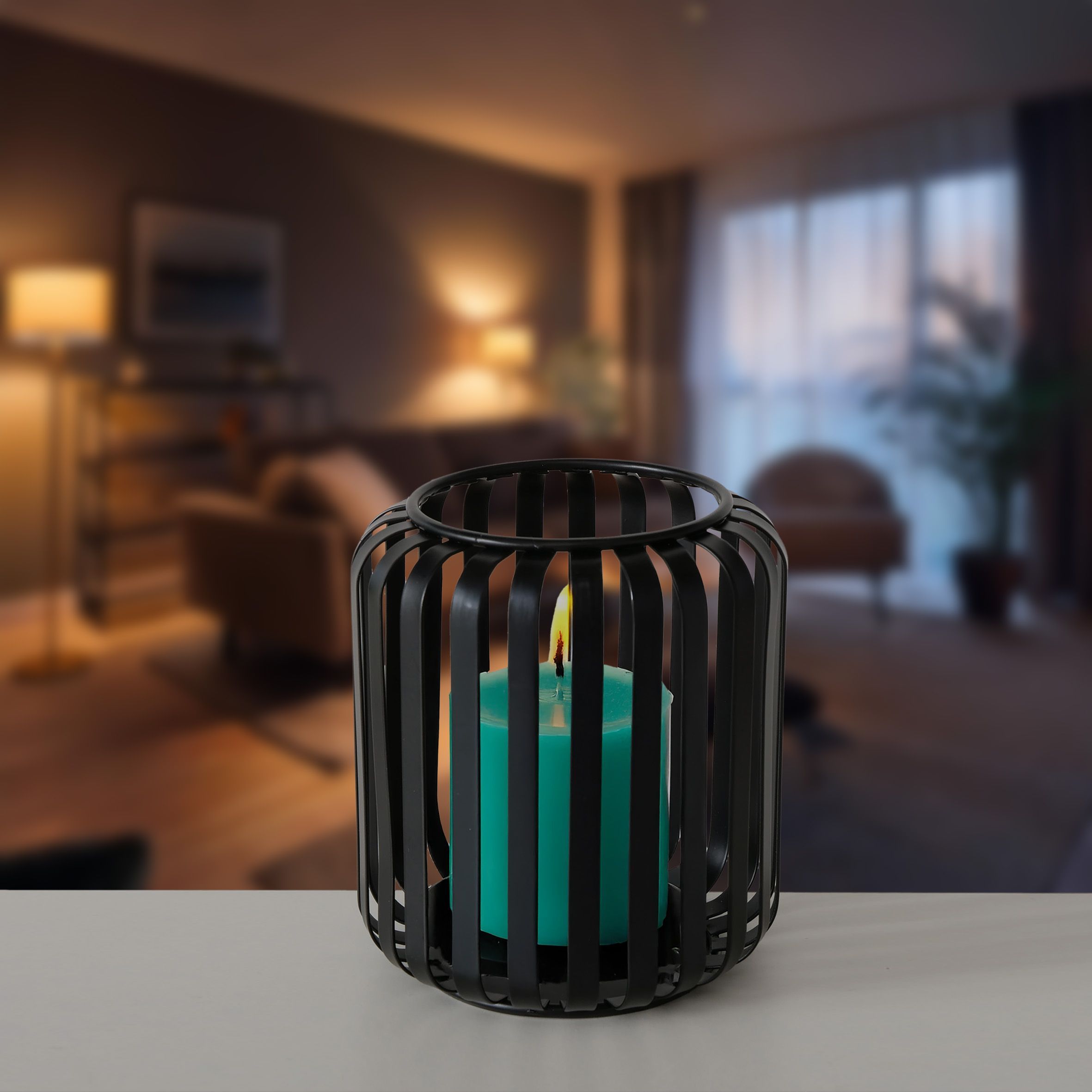 Schlicht-eleganter Metall Kerzenhalter in schwarz ca. 12 x 10 cm im modernem Gitter-Design