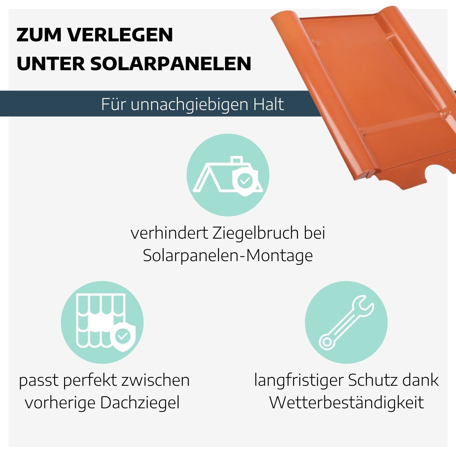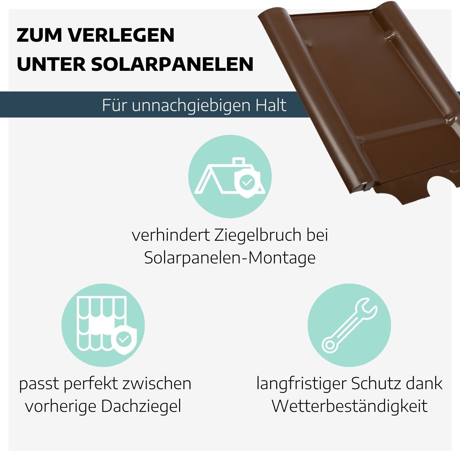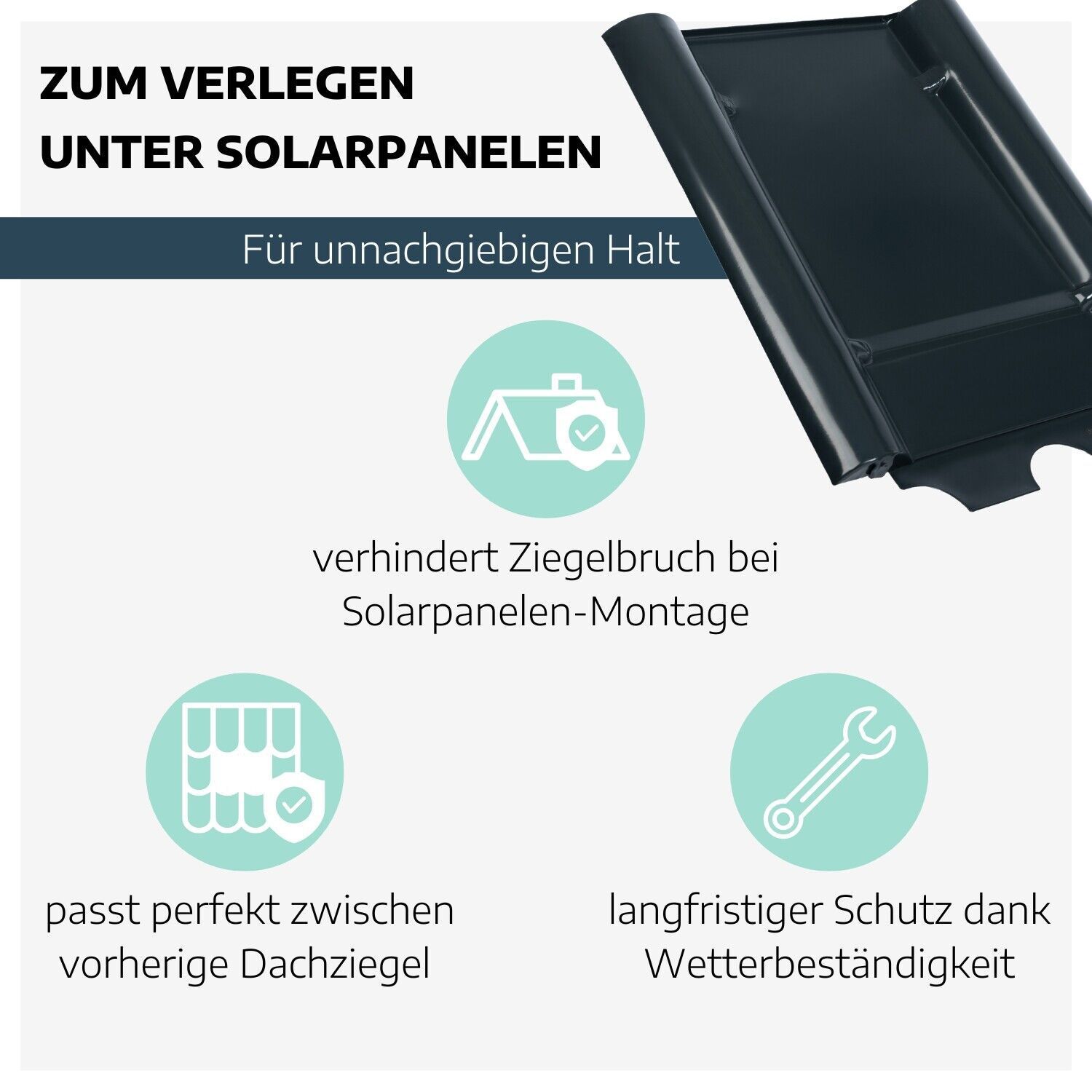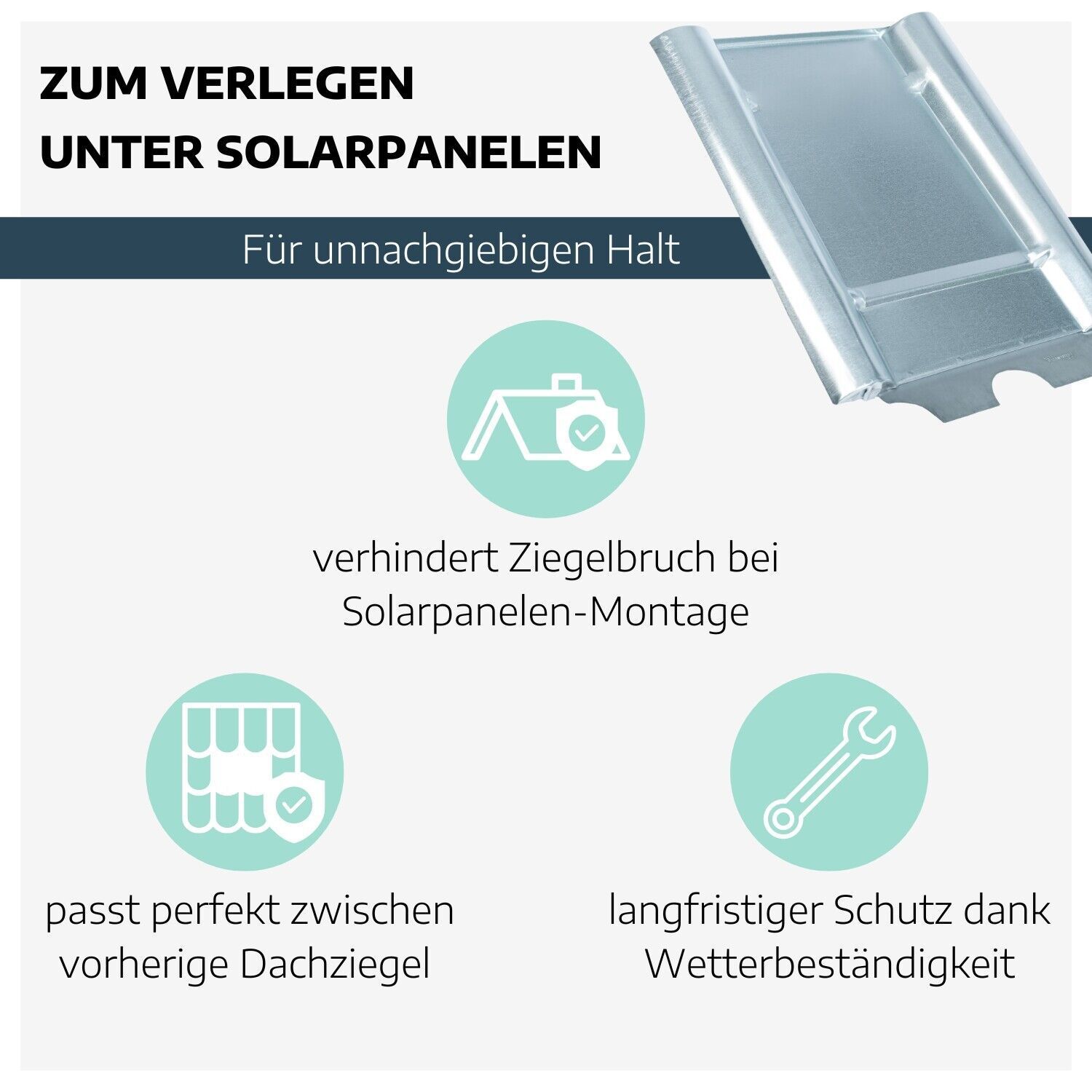 Die feuerverzinkte Metalldachplatte inkl. Bleischürze typ Alpin ersetzt den klassischen Ziegel. Sie verhindert bei der Montage von Solarpanelen Ziegelbruch und gewährleistet die notwendige Dachlast. Der Unterlegziegel wird in höchster Qualität produziert und erfordert bei der Montage kein flexen ode