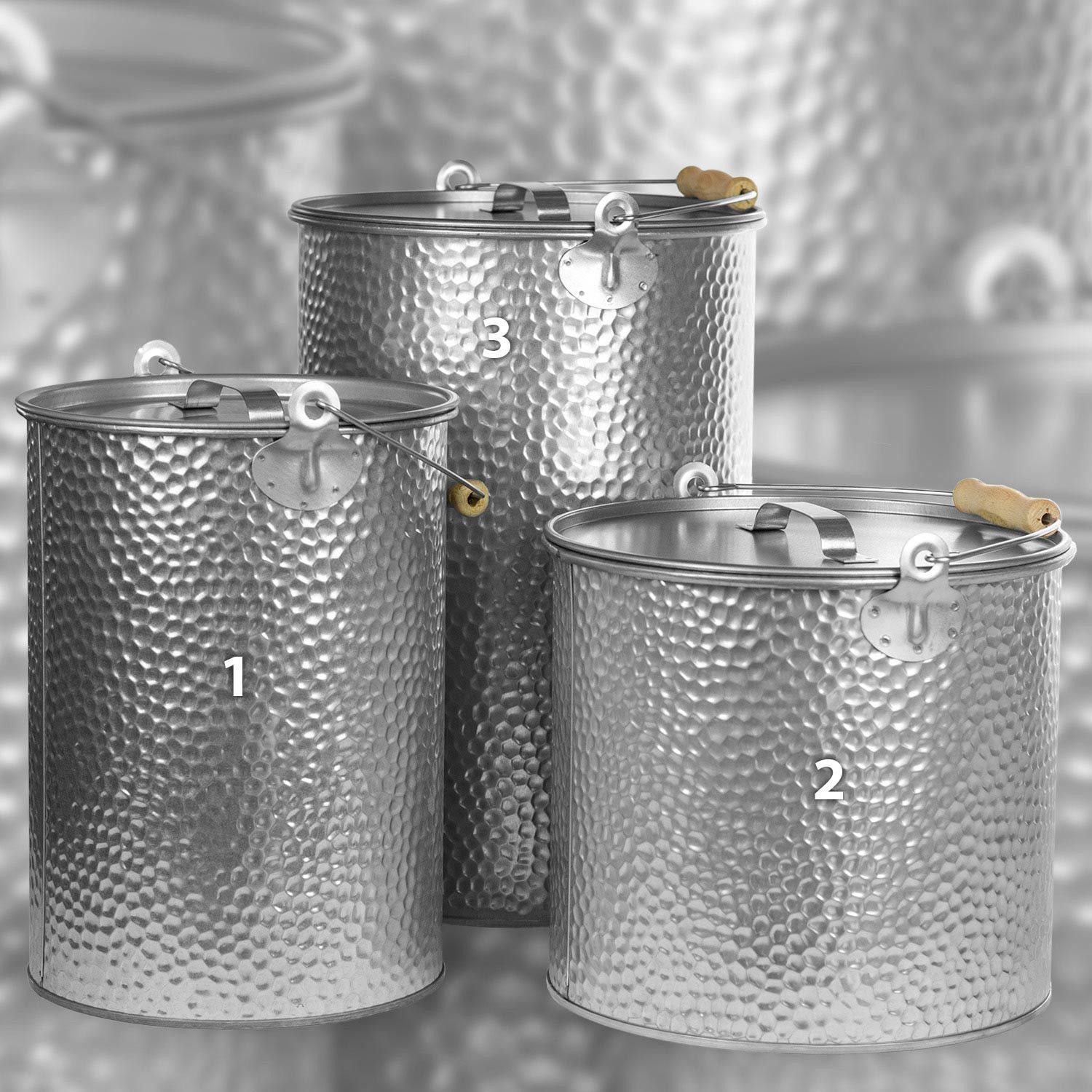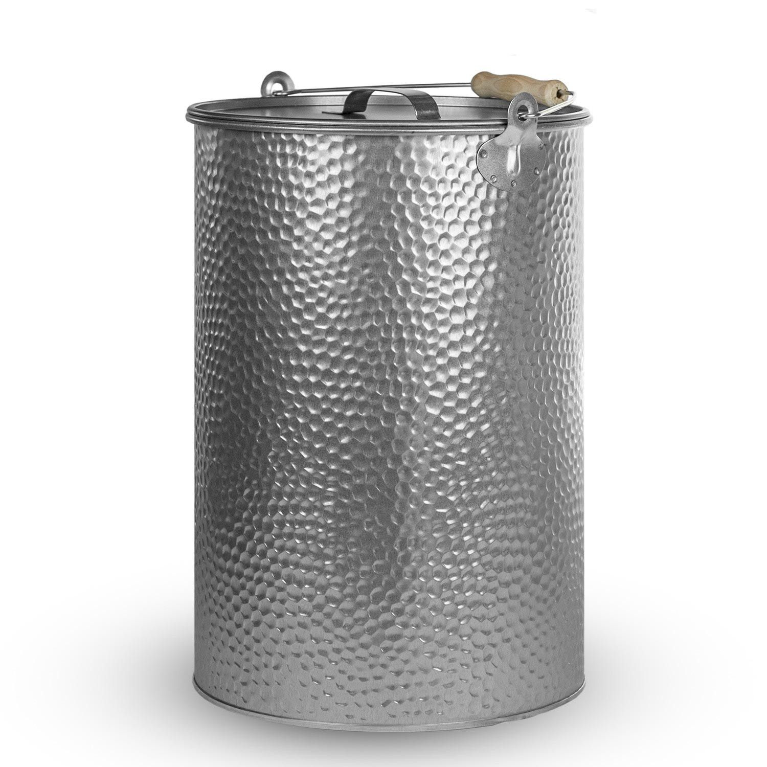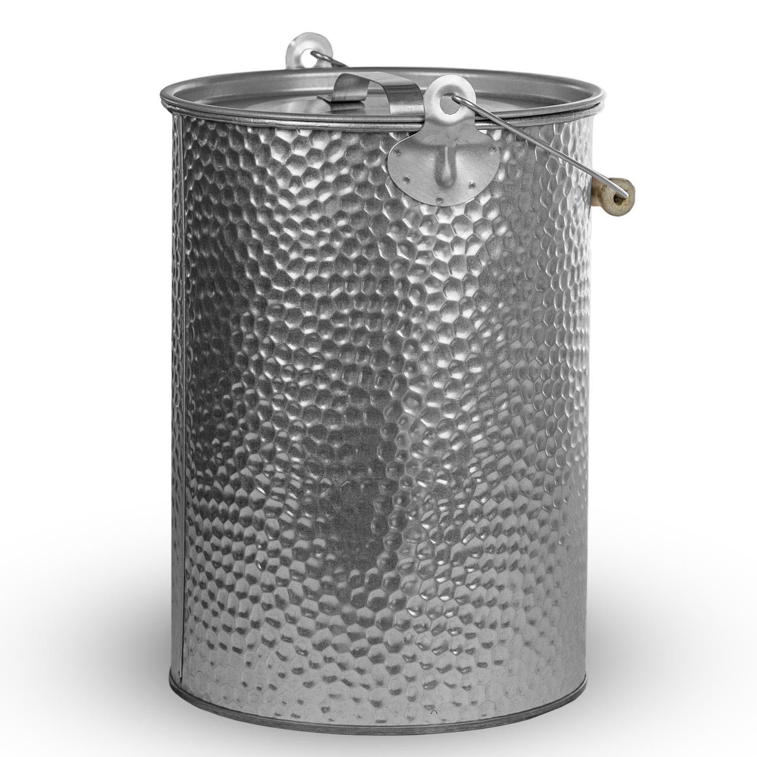 Metalleimer Kohleeimer verzinkt gehämmert Ascheeimer Kamin Industriedesign silber
