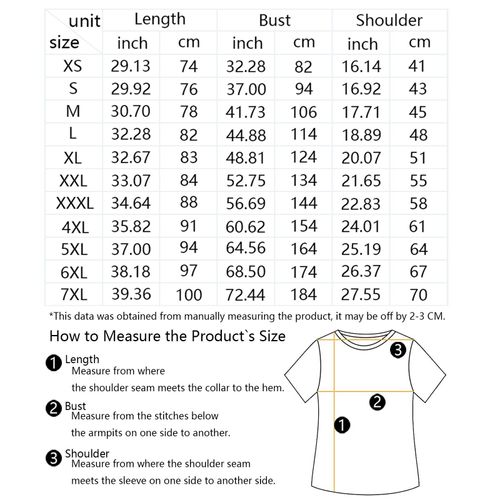 S, M, L, XL, 2XL, 3XL, 4XL, 5 XL, 6 XL und 7 XL