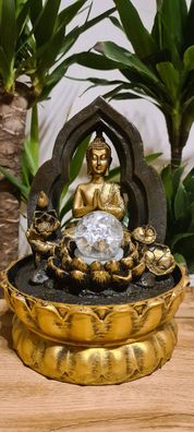 • Betender Thai Buddha Brunnen LED Glaskugel gold schwarz Neu