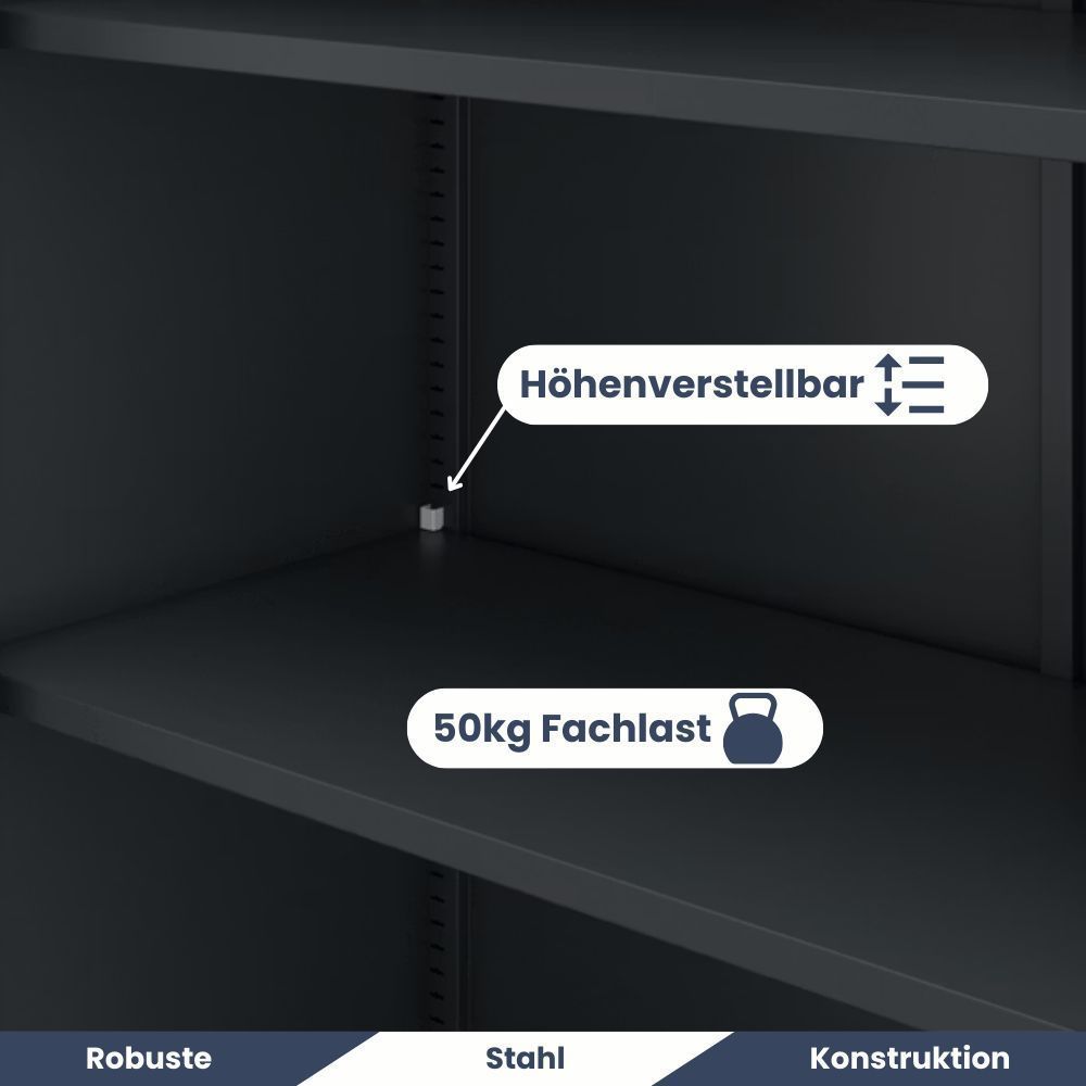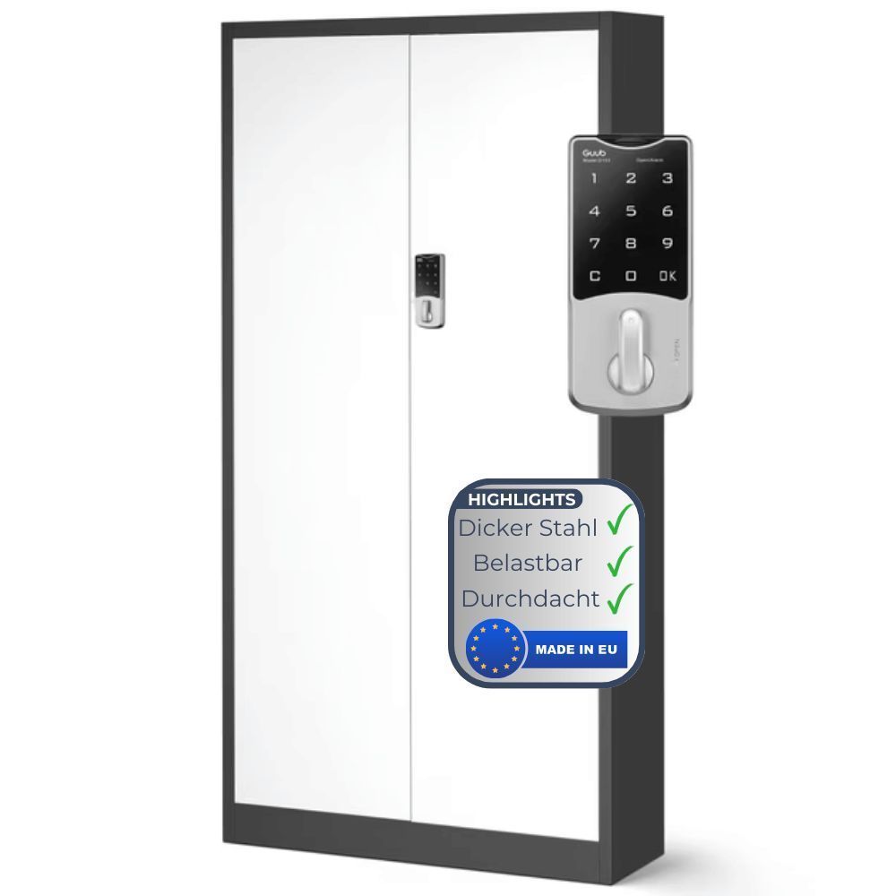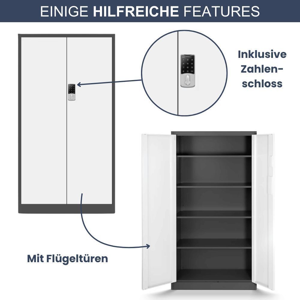 Metallschrank abschließbar ODIS 185x90x40cm Anthrazit-Weiß Zahlenschloss 5 Ebenen