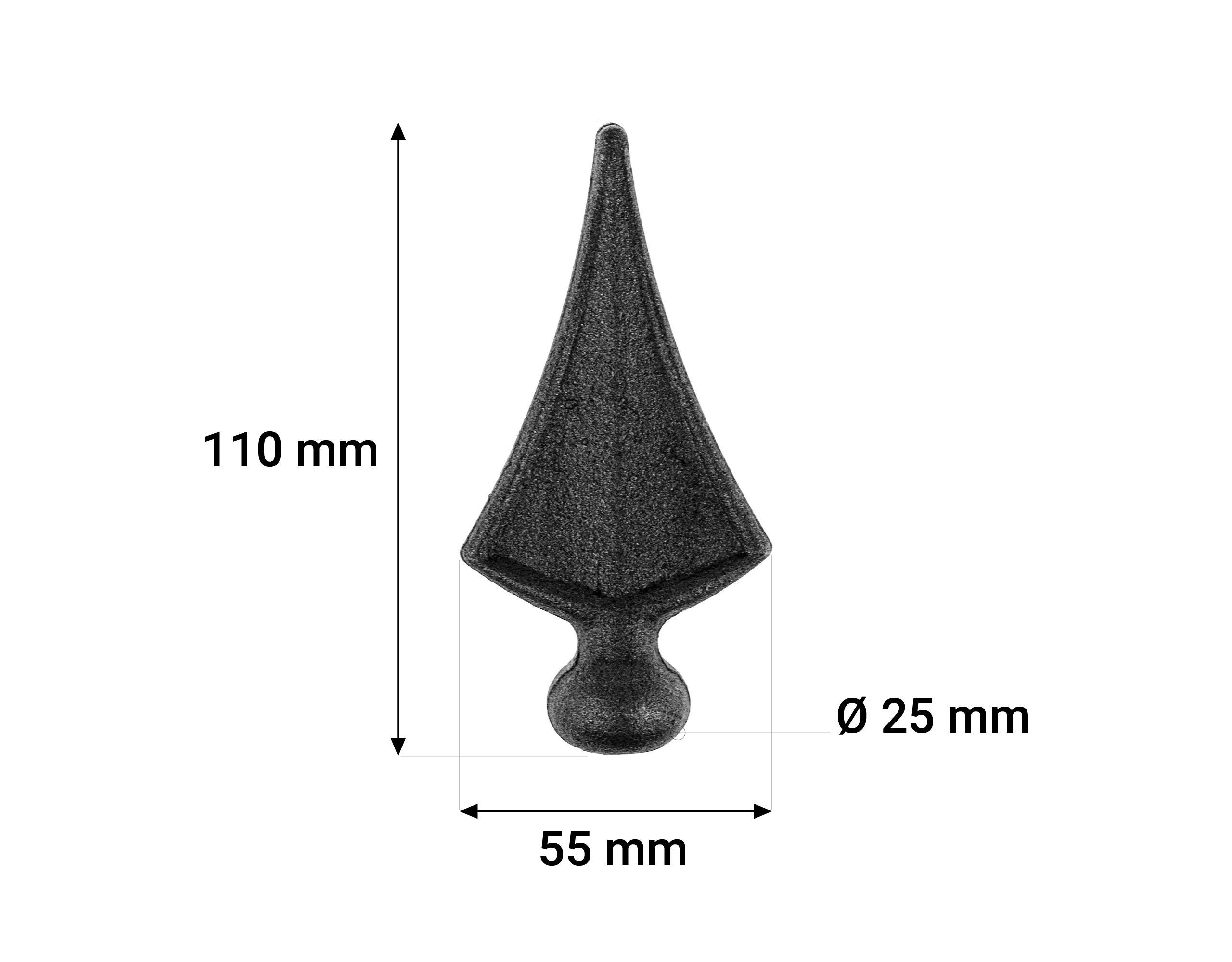 Metallspitze 110x55mm (25mm) Gamma Metallspitze rustikale Torspitze Schmiedeeisen