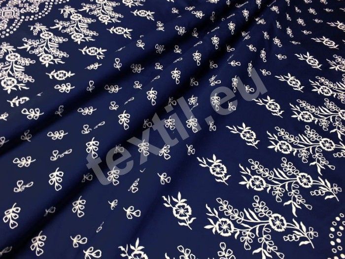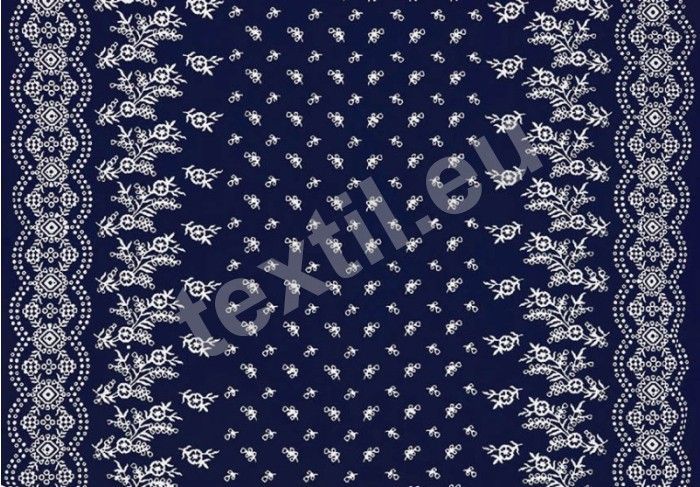 Hochwertiges Baumwollgewebe Blaudruck Bordüren rechts und links entlang den Webkanten Blumenranken und kleinere Blumen zur Stoffmitte hin in weiß, gedruckt auf dunkelblauem Grund 100 % Baumwolle Gewicht: ca. 145 g qm 150 cm breit waschbar bis 40 Grad Celsius mit Feinwaschmittel (nicht im Wäschetrock