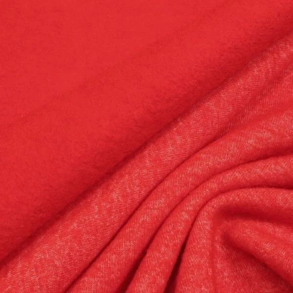 aus Italien Wollfleece gestrickt daher leicht dehnbar rot 155 cm breit 75 % Wolle 25 % Polyester Gewicht: 330 g lfdm Meterware Abgabe in 50-cm-Schritten Für den Sonderpreis von EUR 9,95 erhalten Sie 0,5 lfd Meter bei einer Breite von 155 cm