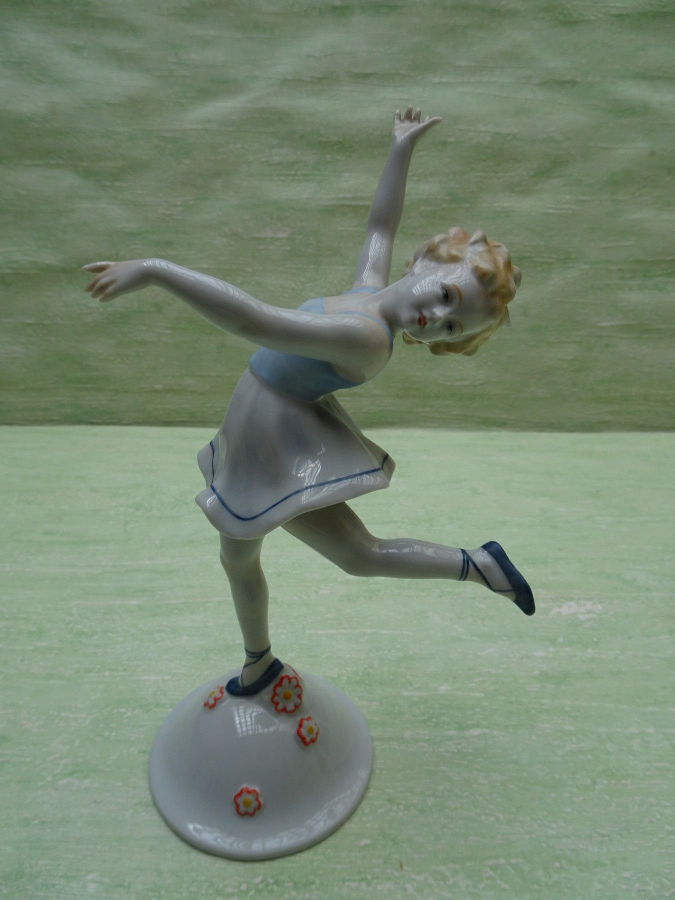 Metzler Ortloff Porzellanfigur tanzendes Kind weiß-blau ca 20,5cm