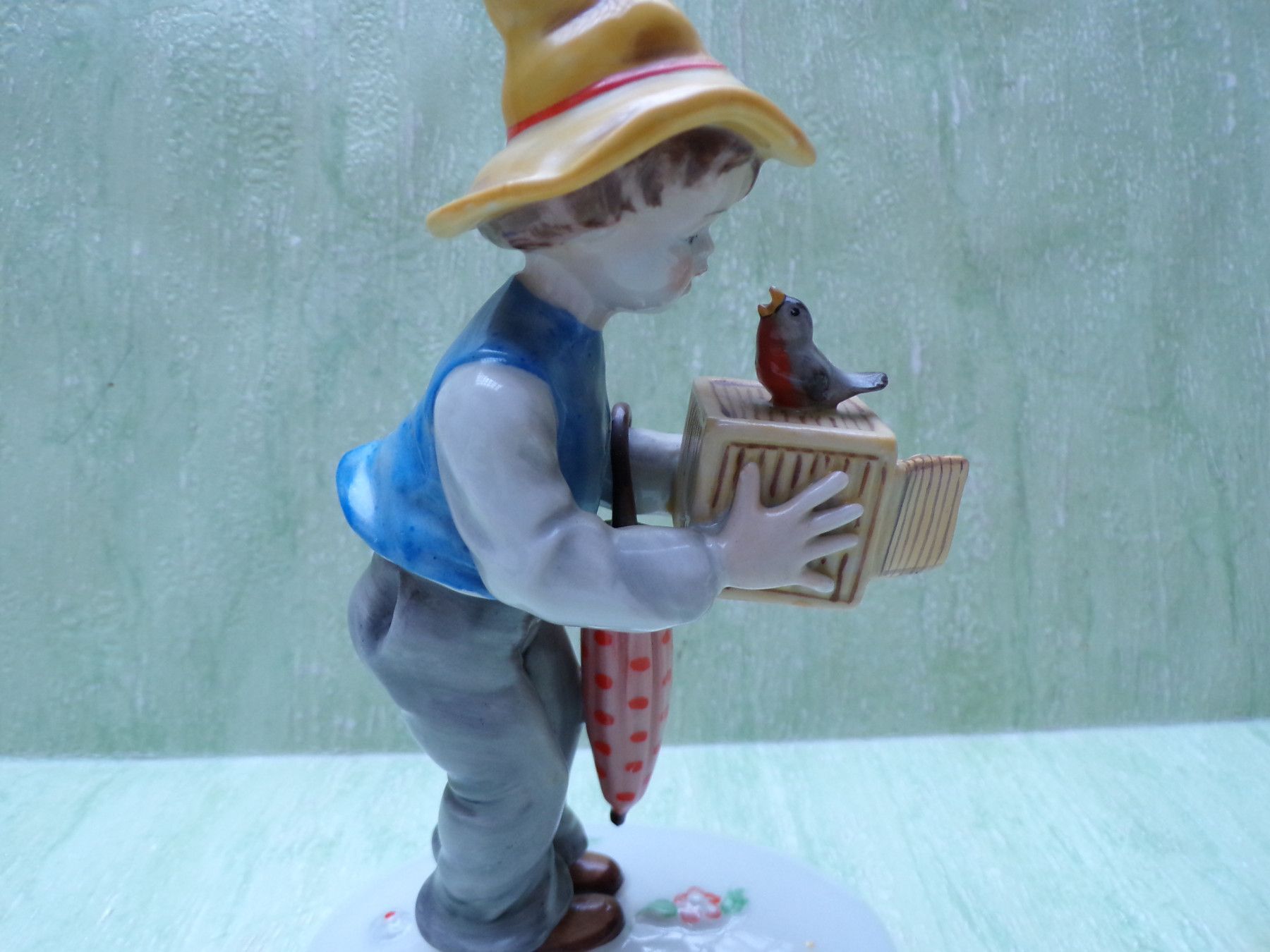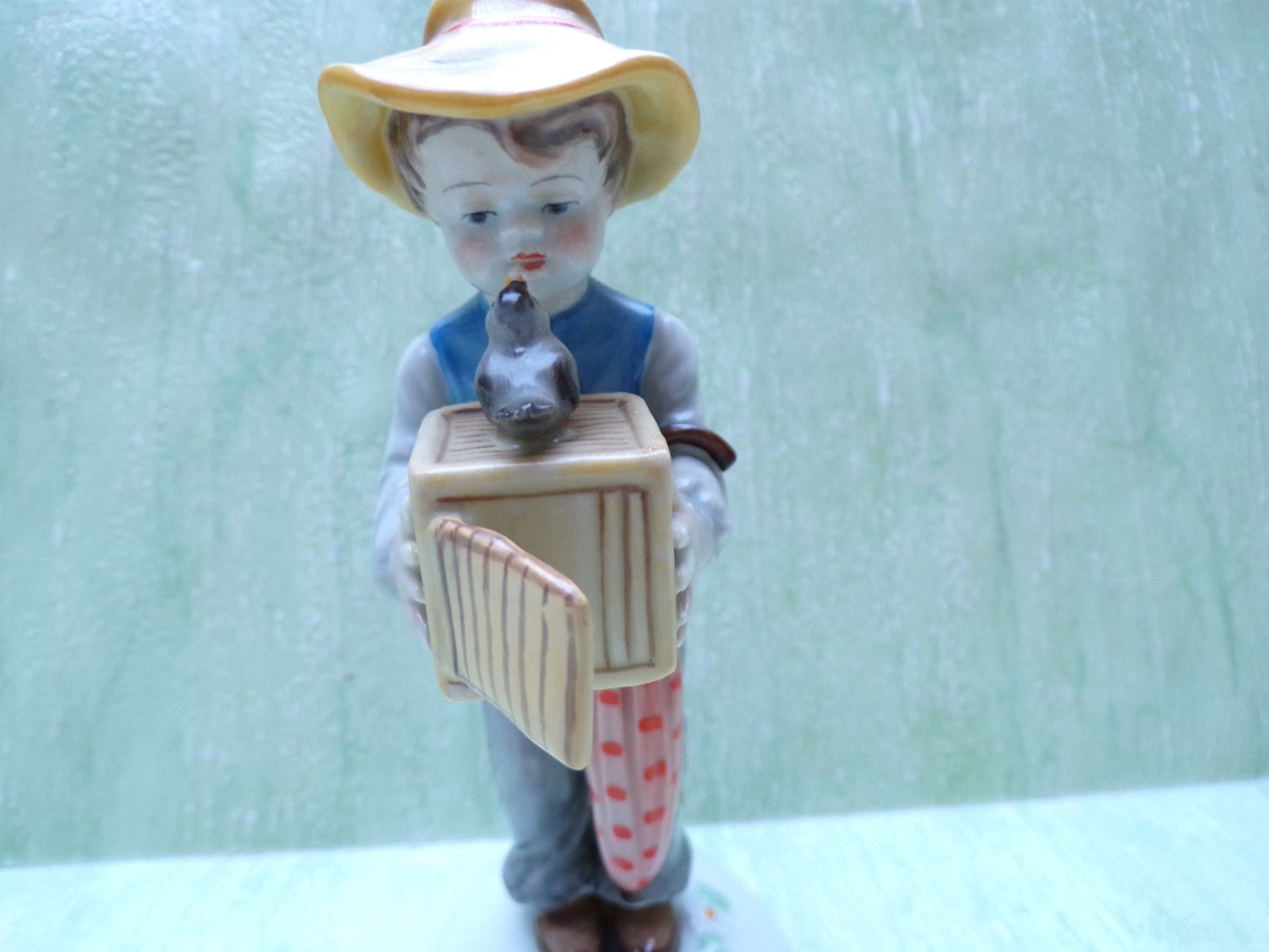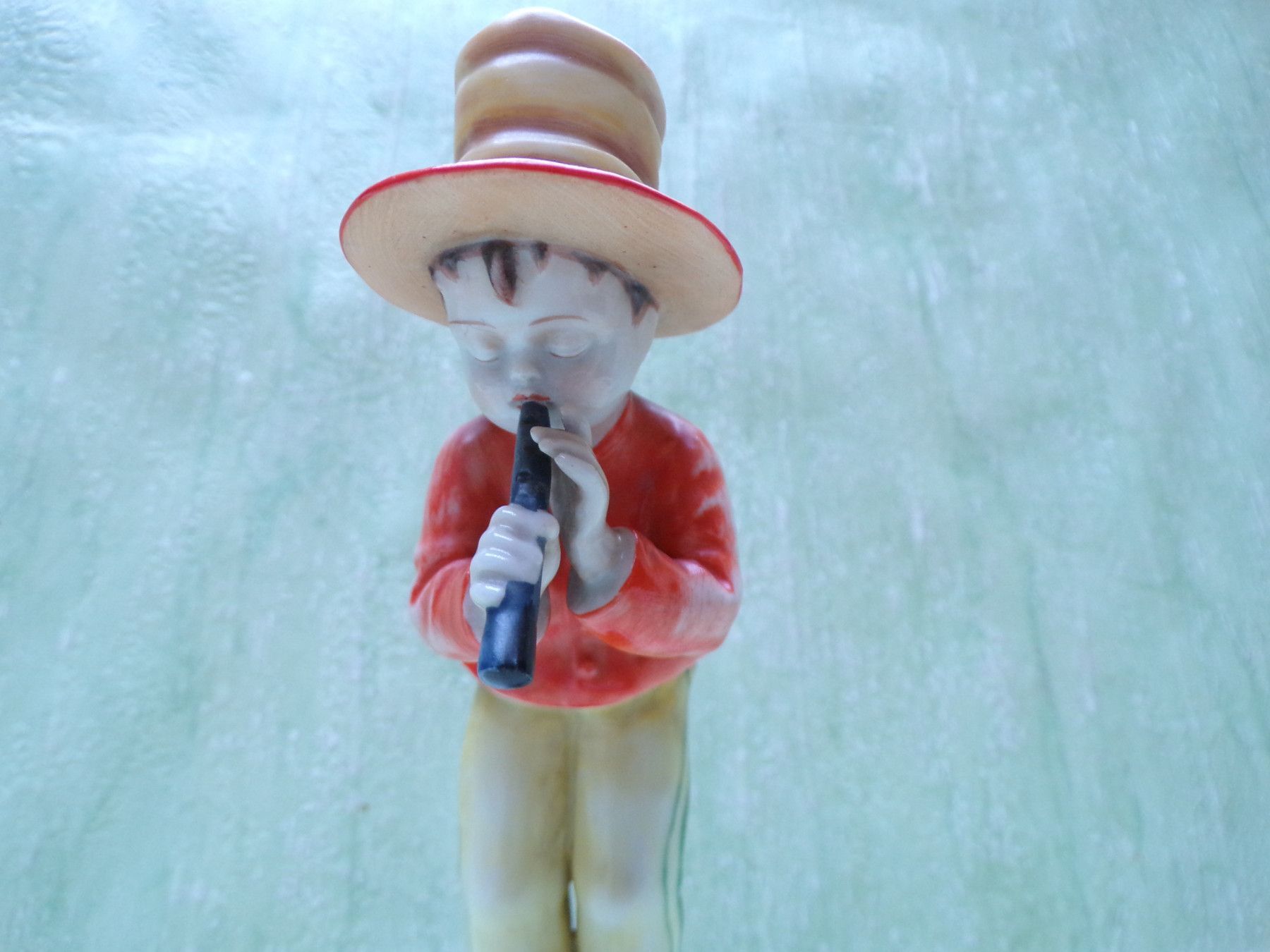 Metzler & Ortloff Thüringen Kunstporzellan Junge Flötenspieler Vogel