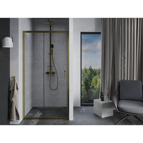 Mexen Apia ausziehbare Duschtür 125 cm, Transparent, Gold - 845-125-000-50-00