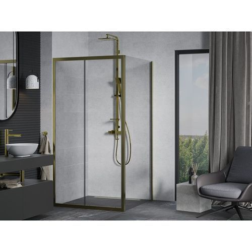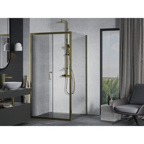 Mexen Apia Duschabtrennung 100x100 cm, Transparent, Gold, Schiebetür, 6mm Glas