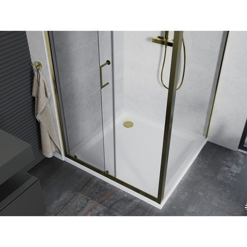 Mexen Apia Duschabtrennung 100x100cm, Gold, inkl. Duschwanne Flat, Weiß