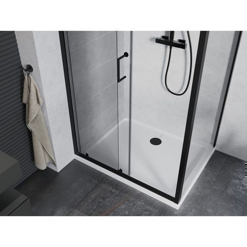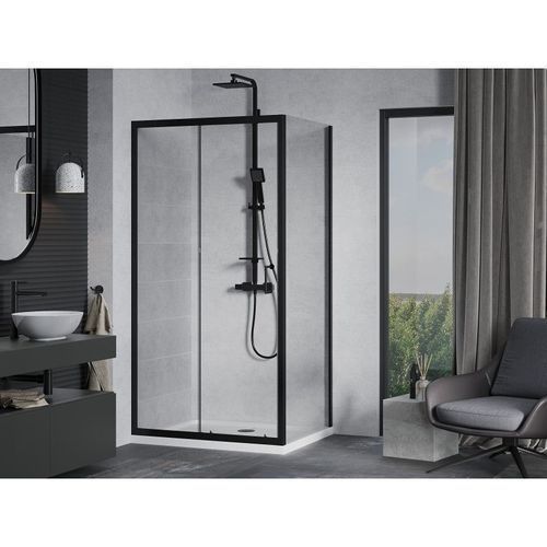 Mexen Apia Duschabtrennung 100x80cm Schwarz + Duschwanne Weiß, Slim Design