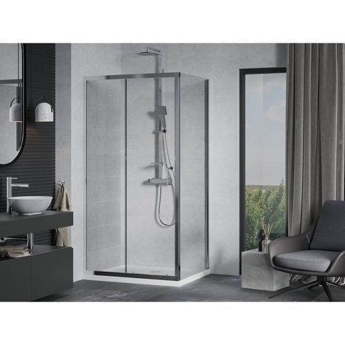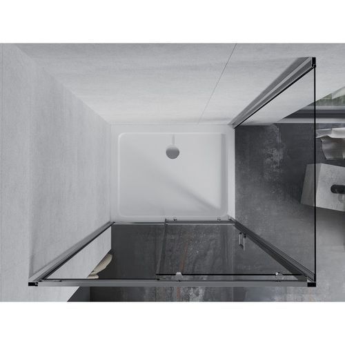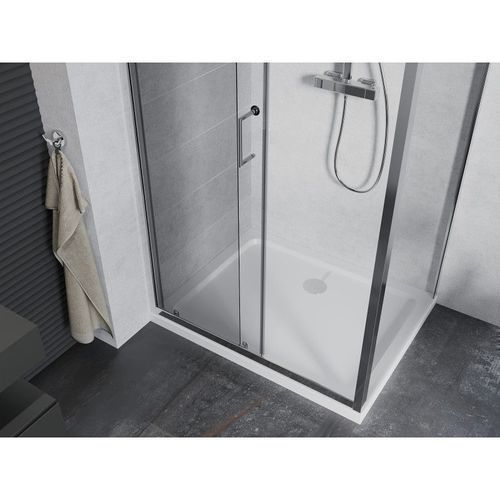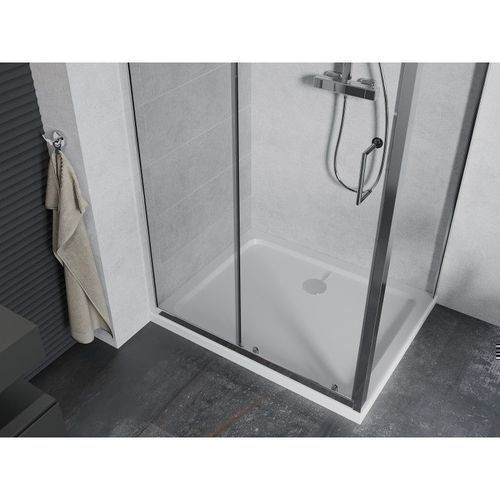 Mexen Apia Duschabtrennung 140x100 cm Chrom + Duschwanne Flat, Transparent