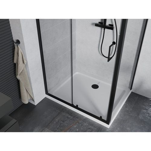 Mexen Apia Duschabtrennung 140x100cm Schwarz + Flat Duschwanne Weiß